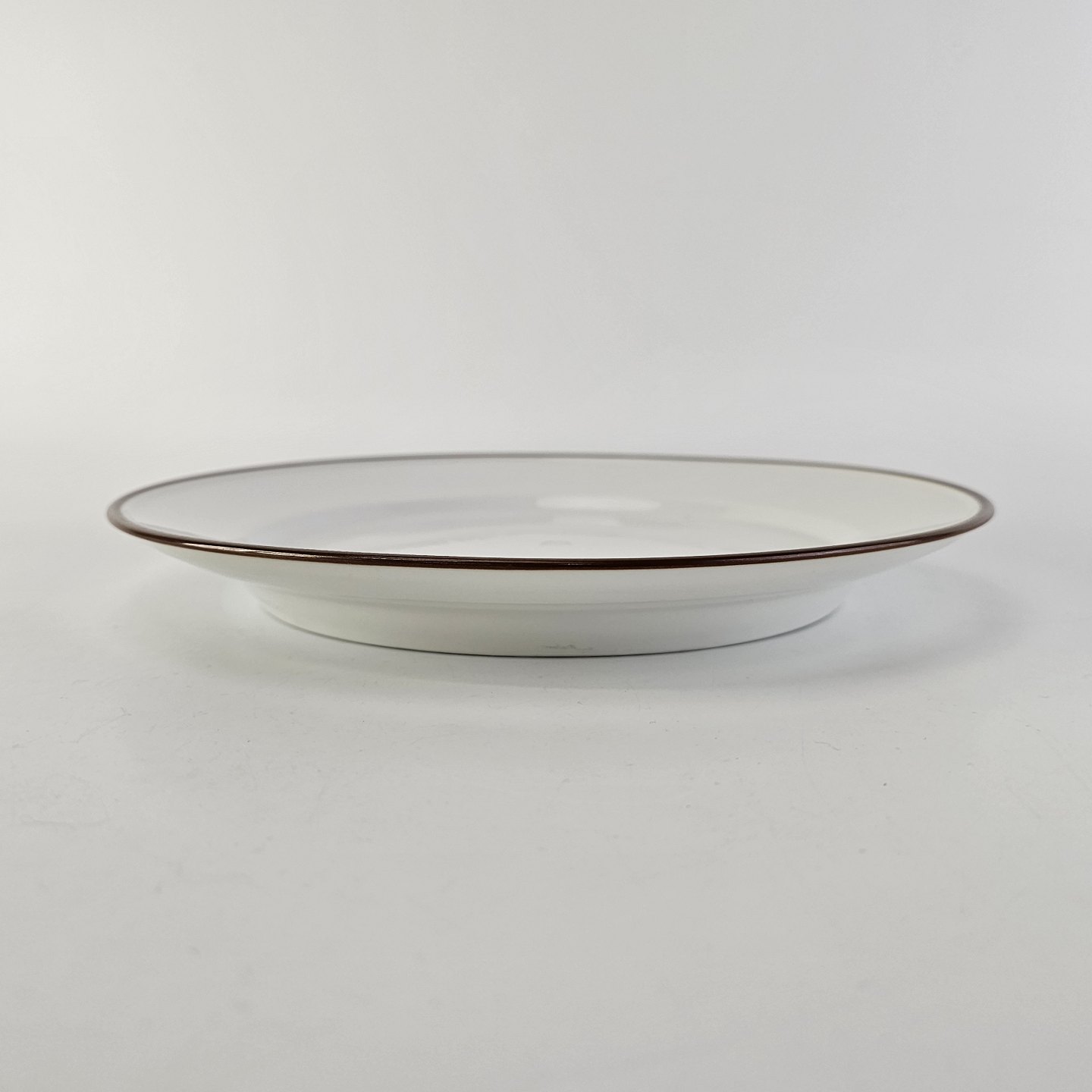 Service i glat hvidt porcelæn med brun kant