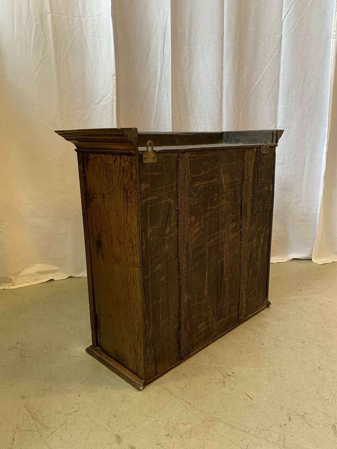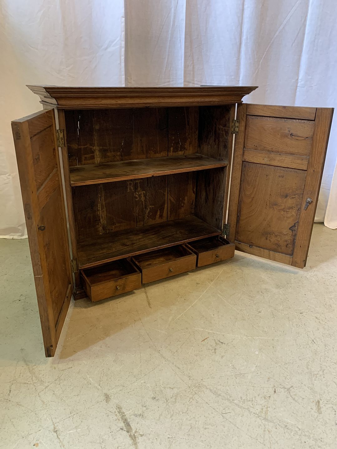 Vægskab i massivt egetræ og rodtræ, dateret 1811.