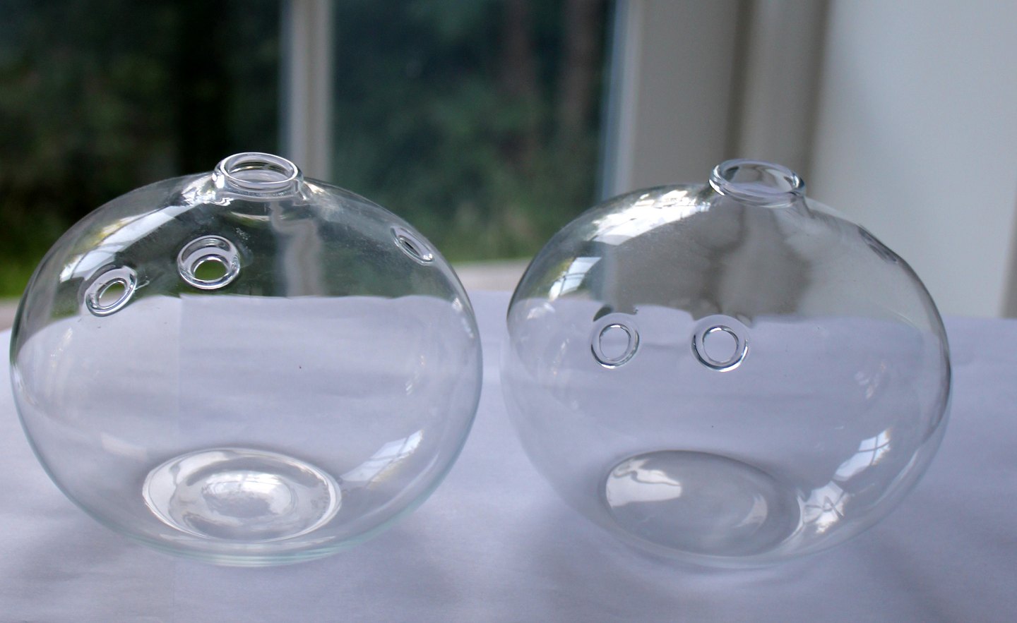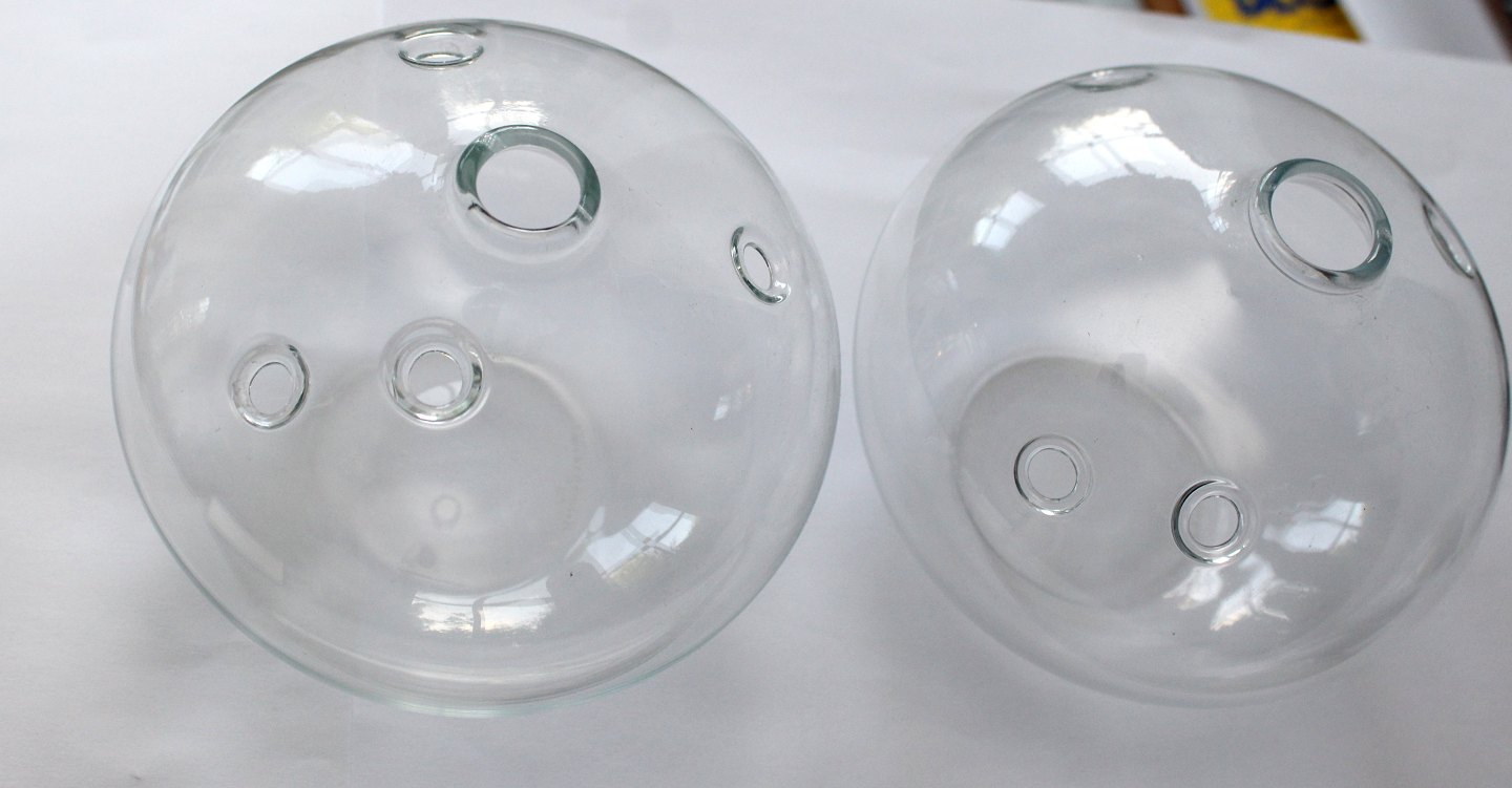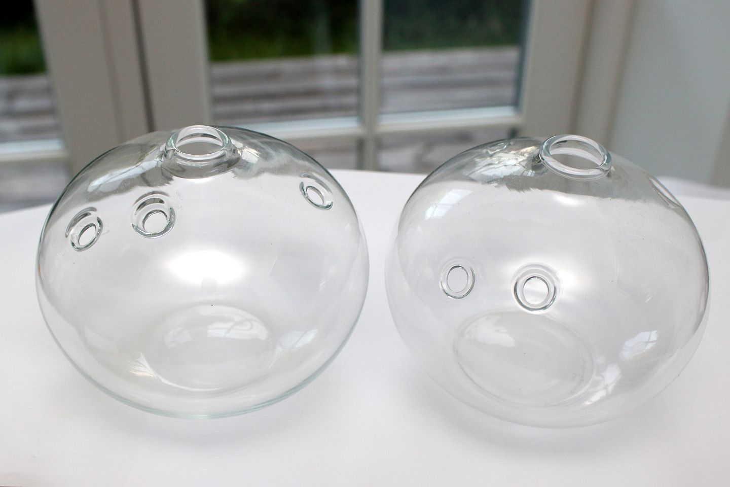 Kastrup/Holmegaard produceret på Fyens Glasværk, Hulvaser. Designet af Michael Bang i 1971. Hvidt glas kugleformet vase med huller. Højde 11 cm. Diameter 12 cm. Signeret Holmegaard MB. Pris: 275 kr. stk. Lager: 2