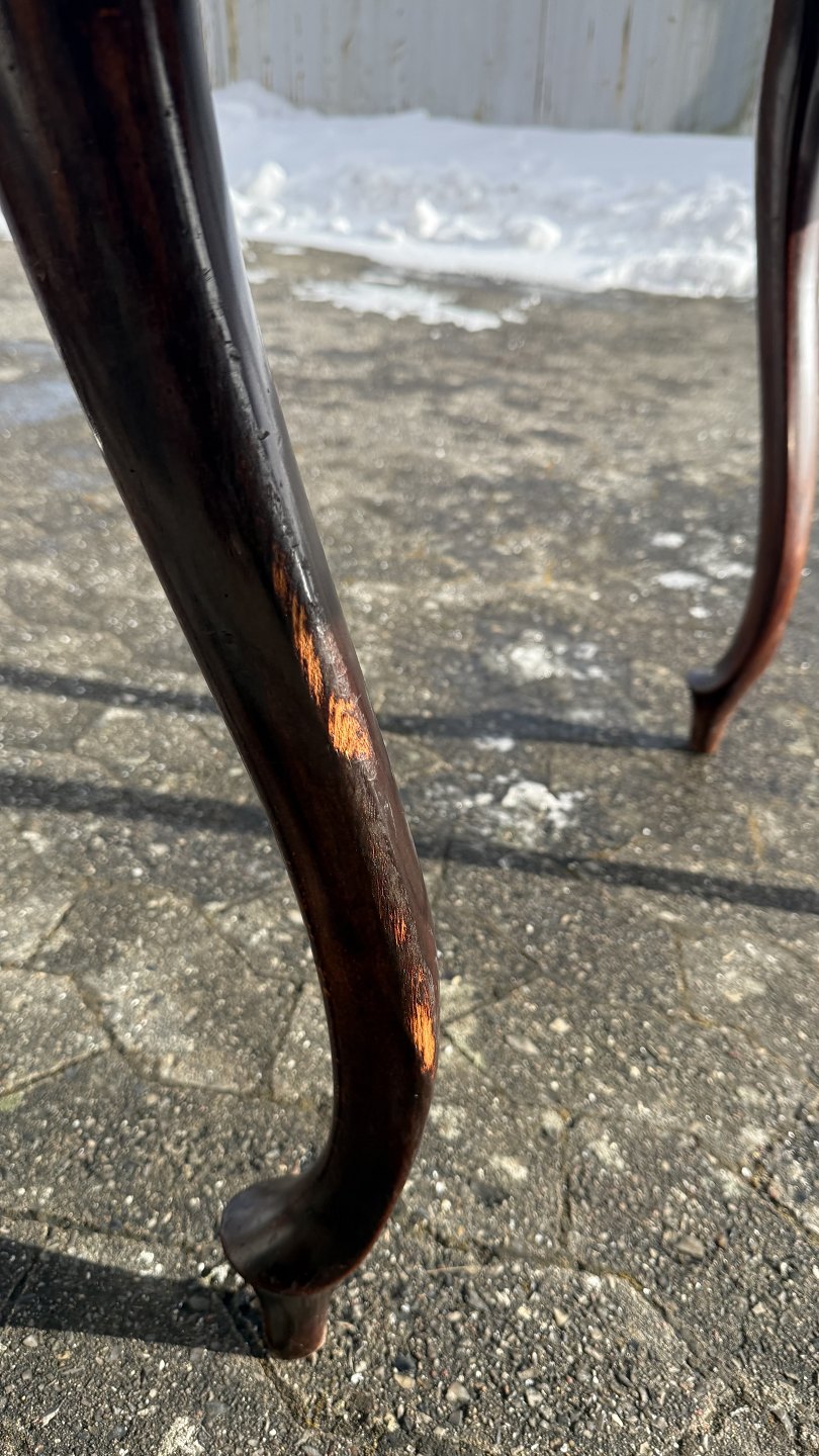 Ovalt salonbord i massivt mahogni med 2 tillægsplader, fra 1920erne.