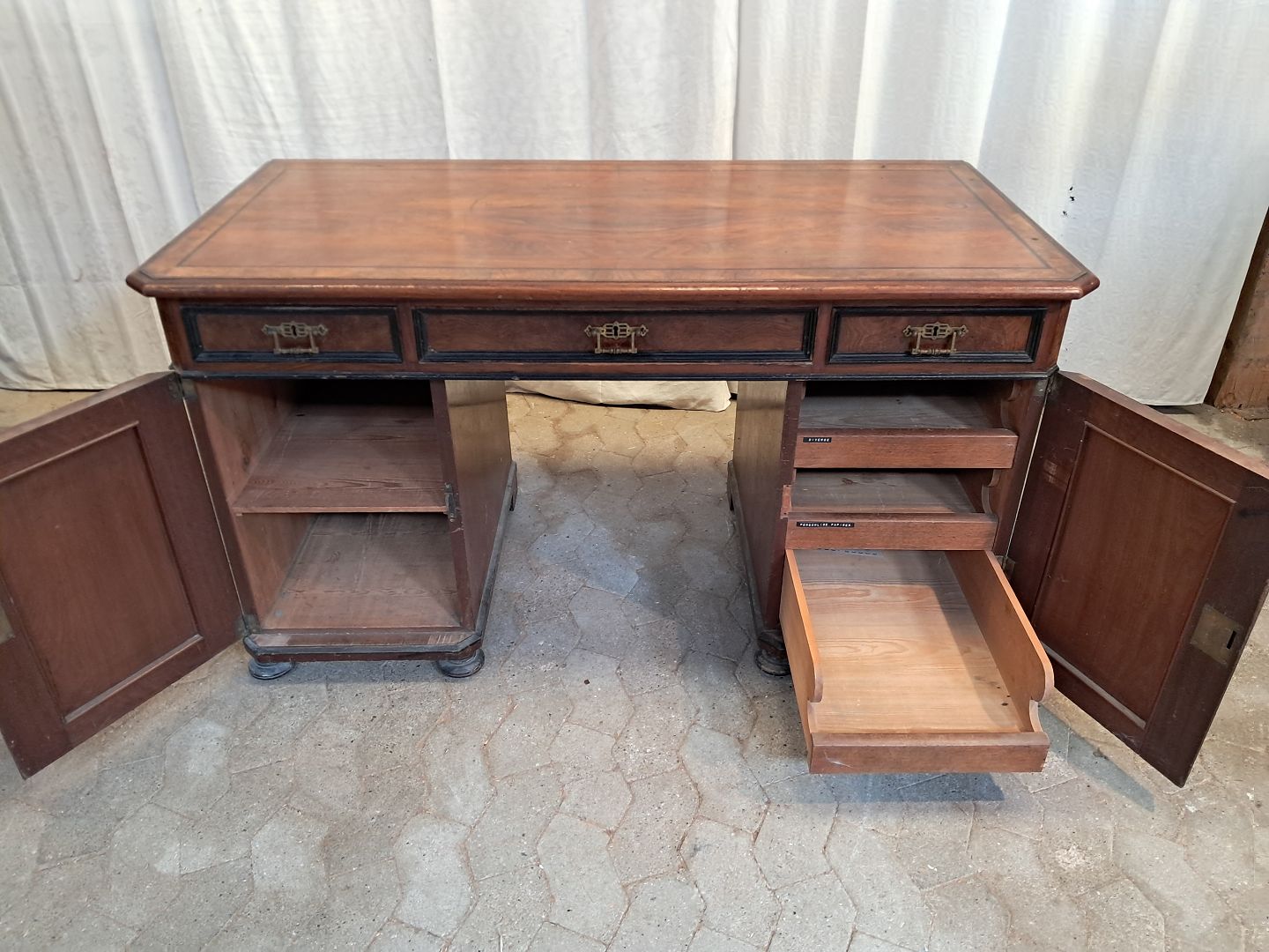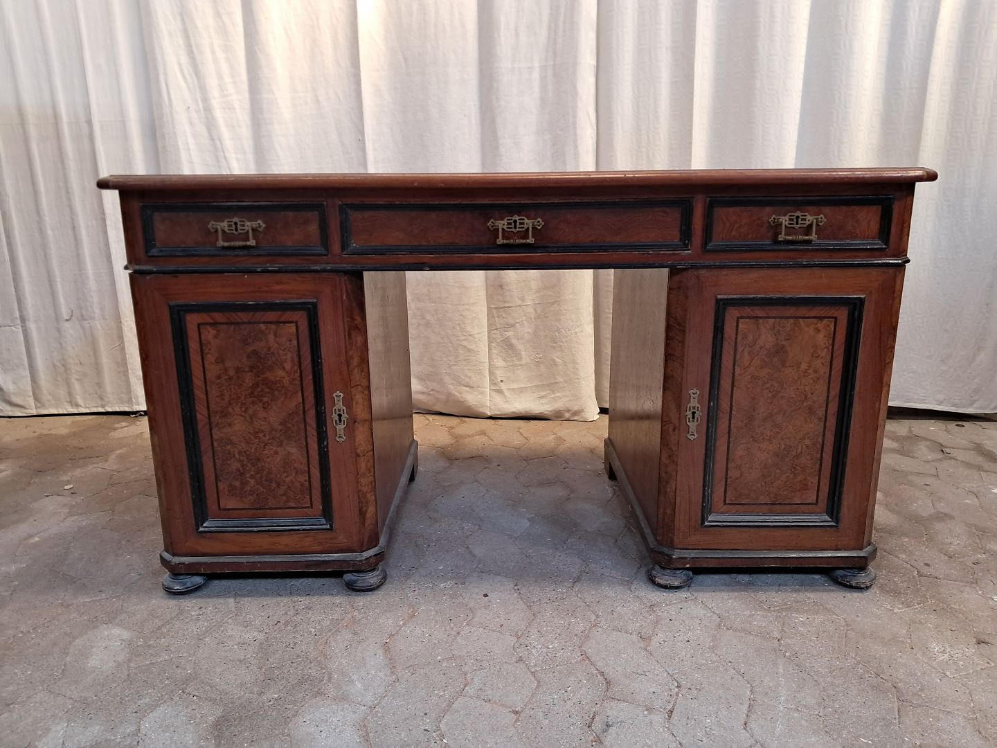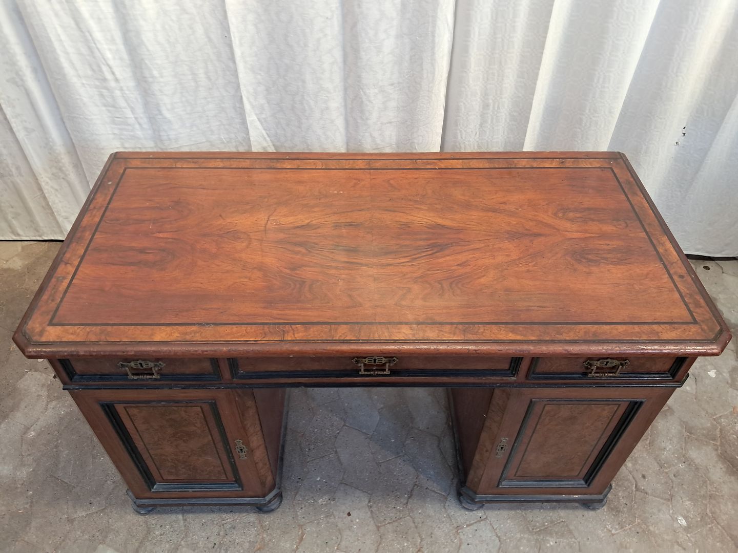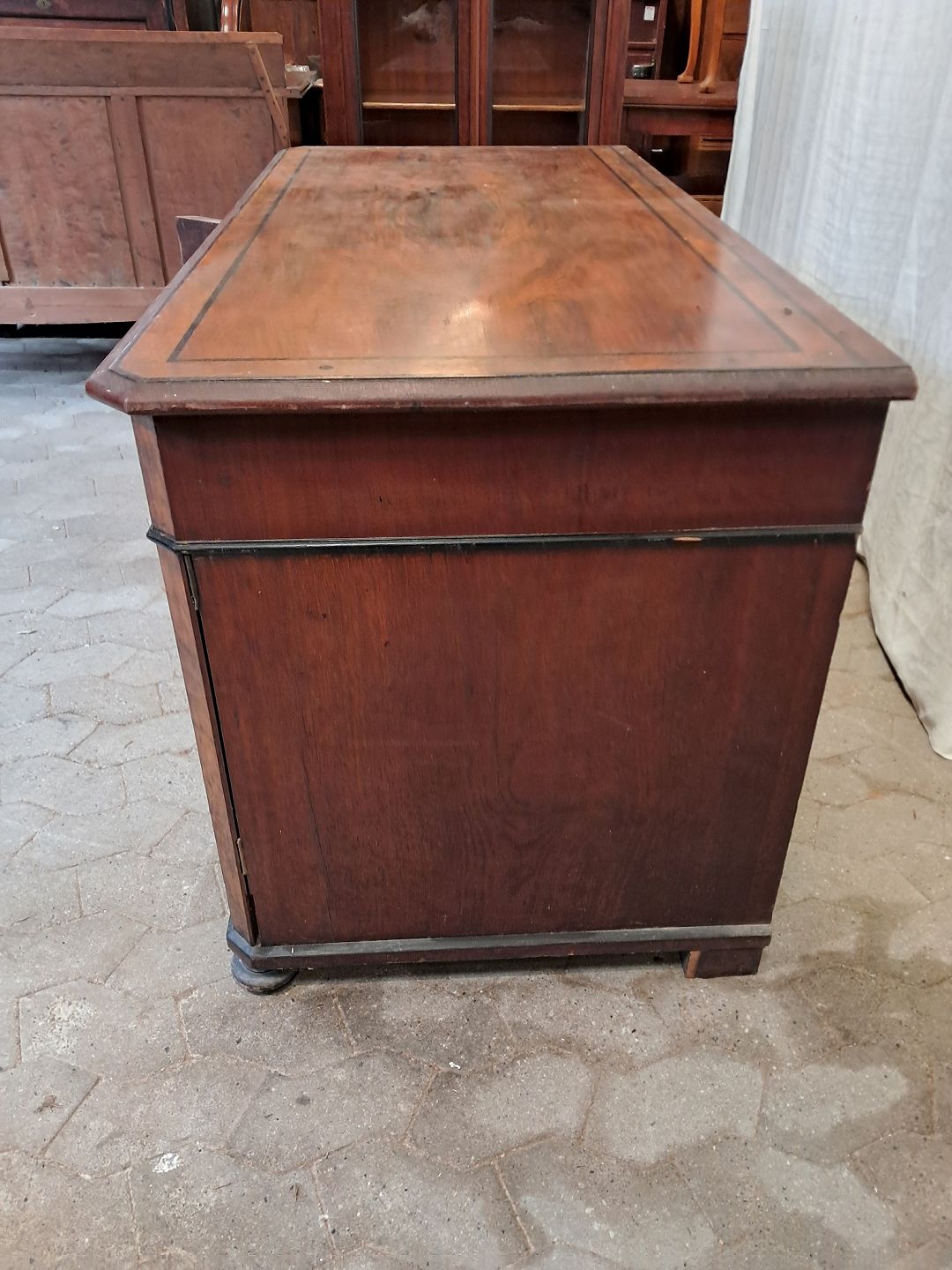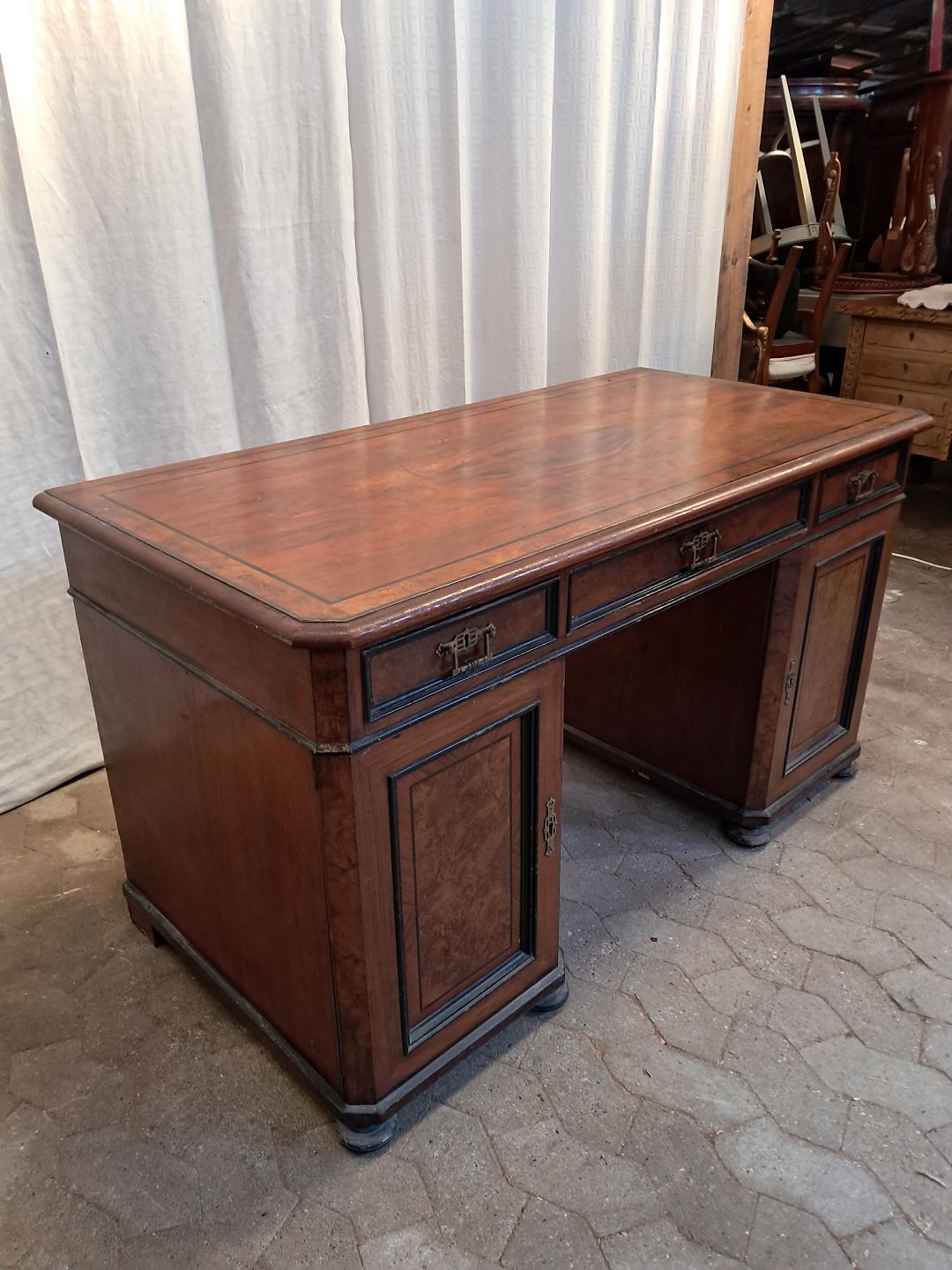 Skrivebord i fineret mahogni og rodtræ, fra 1900erne.