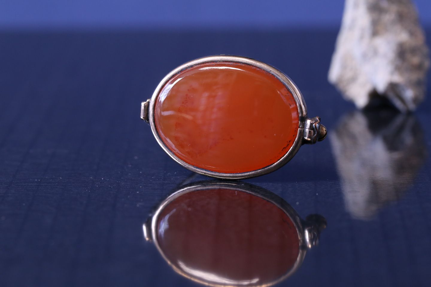 Guldbroche med stor orange sten, og flot guldramme. Brochen vil være et flot smykke til en elegant trøje eller cardigan. Brug den i hverdagen, eller til en kjole ved festlige lejligheder.