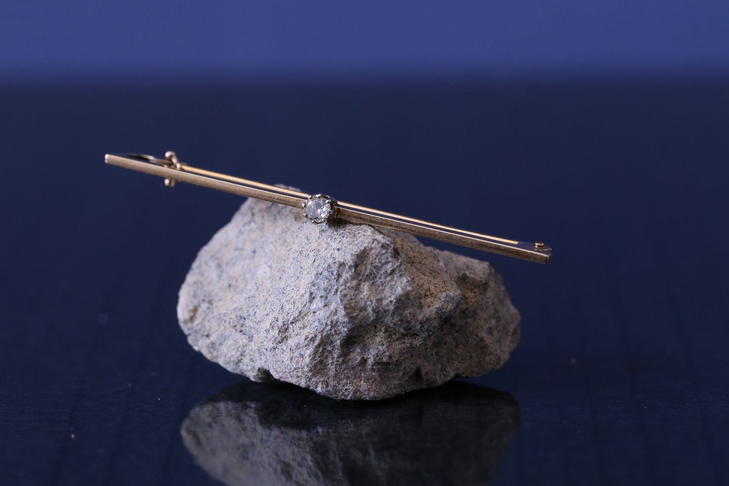 Gold brooch in 14 karat gold, with beautiful faceted brilliant.