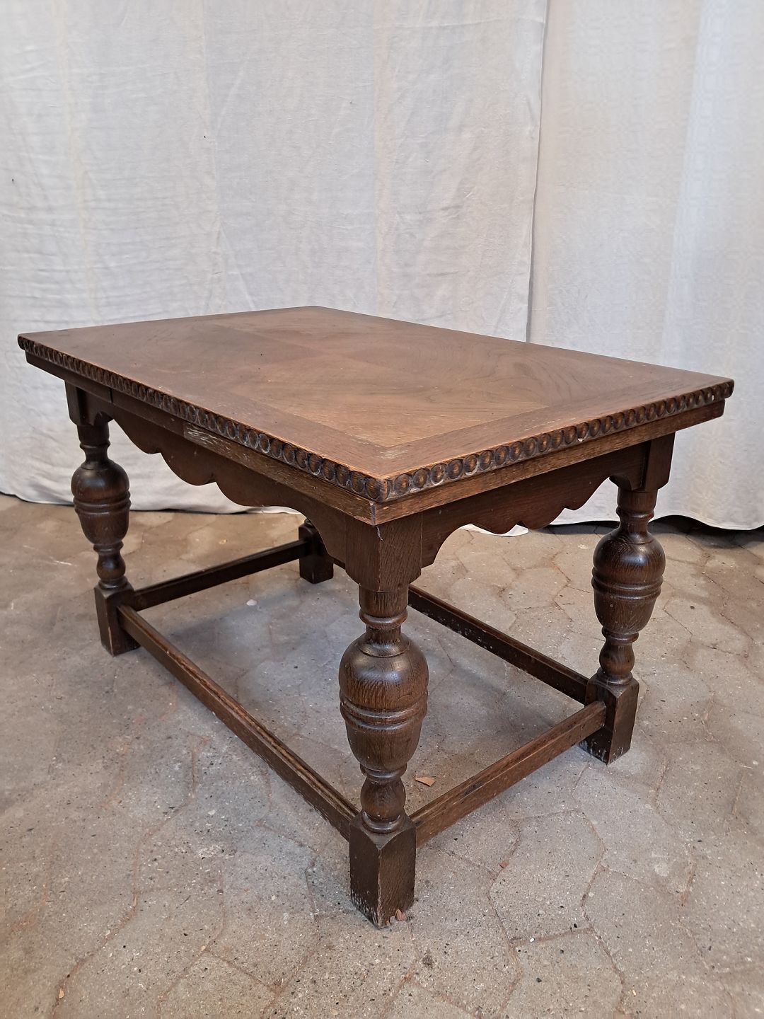 Sofabord i fineret egetræ med hollandsk udtræk, fra 1980erne.