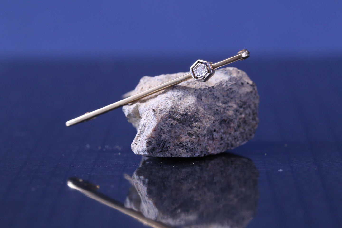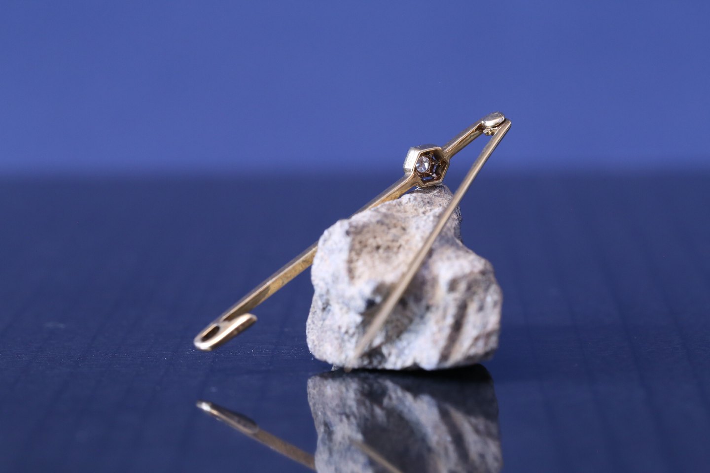 Flot guld guldbroche i 14 karat guld med indlagt hexagonal brillant. Stemplet WG 585.