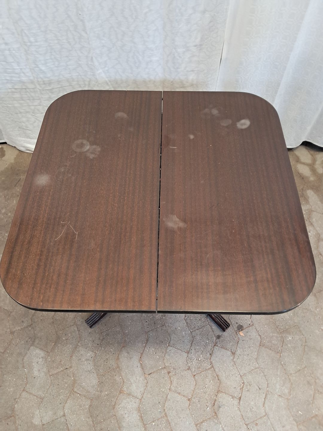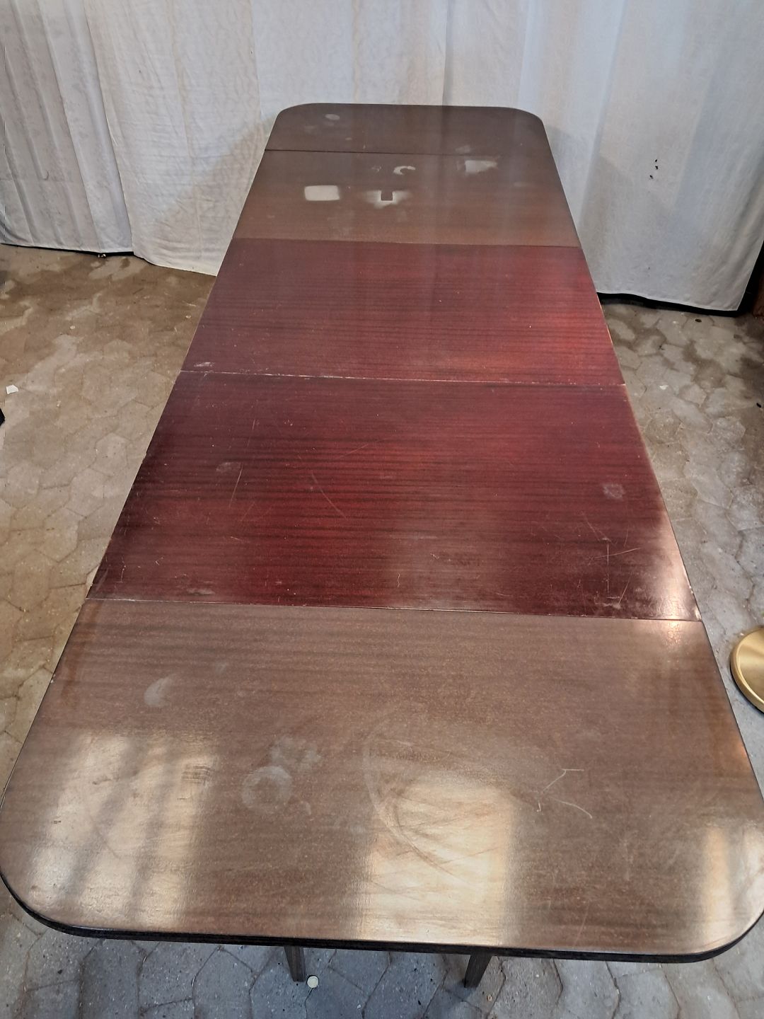 Spisebord i fineret mahogni med 3 tillægsplader.
