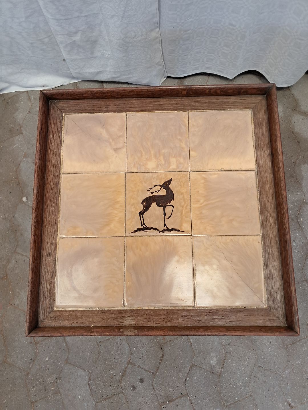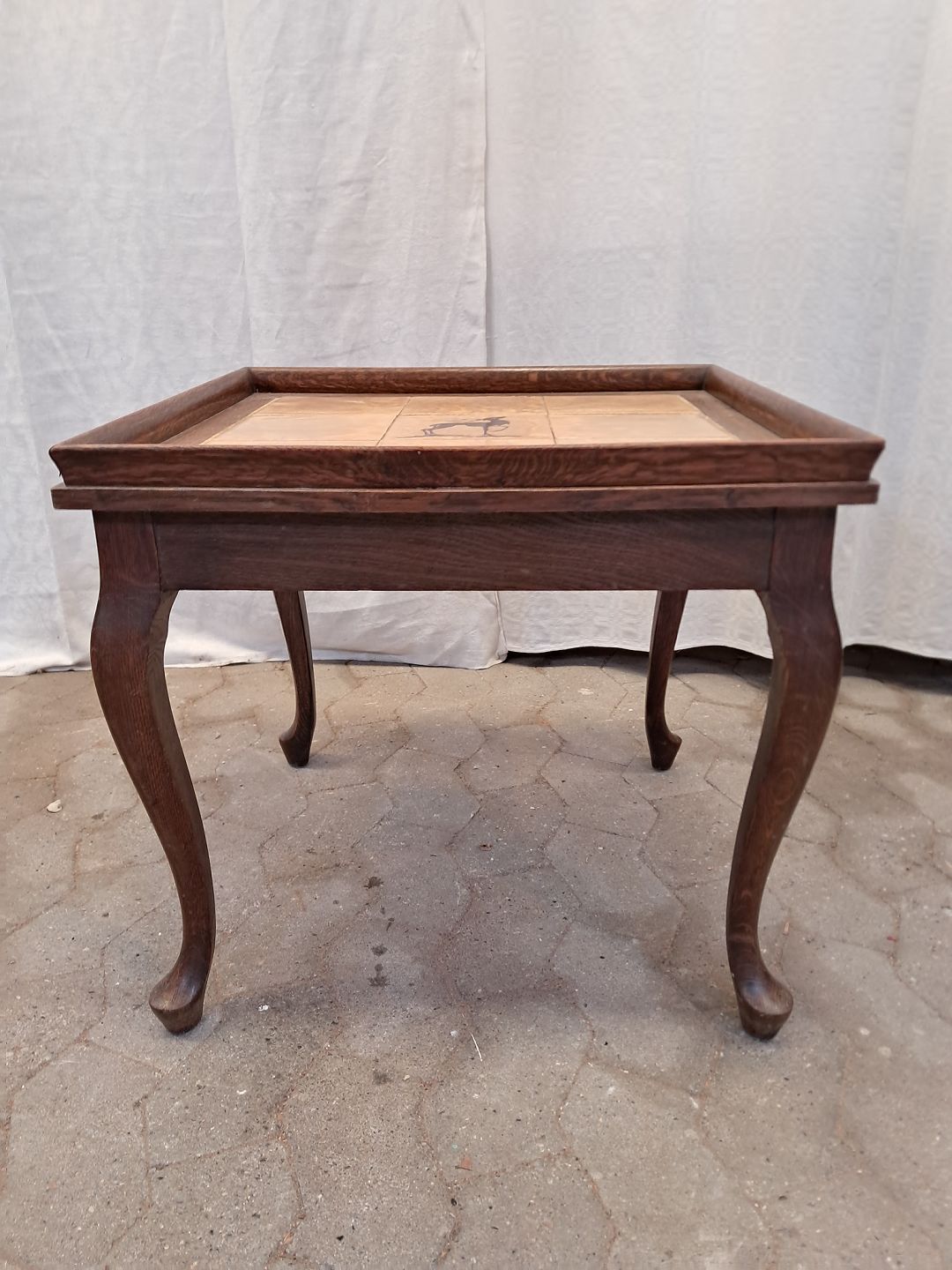 Lampebord i massivt egetræ med kakler, fra 1920erne.