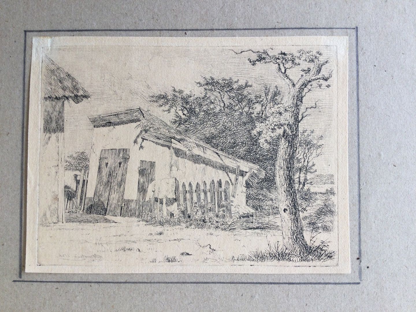 Radering af Heinrich Buntzen (1803-92) - Landskab med træ og bygning 1836.