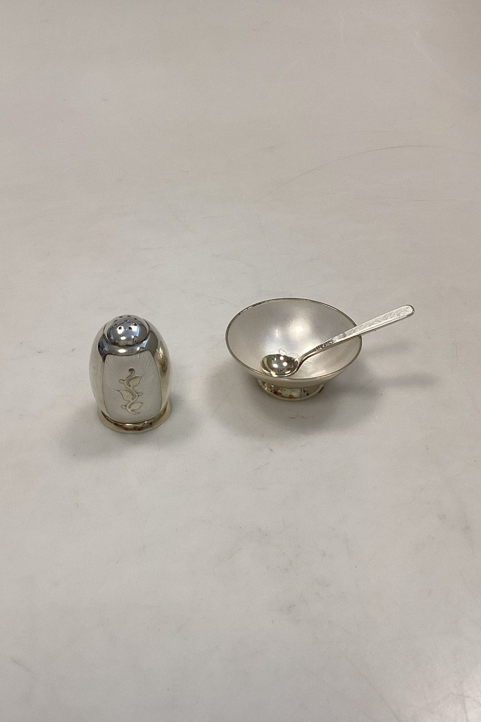 Volmer Bahner Sterling Sølv Sæt med Saltkar, Ske og Saltbøsse Hvid emalje