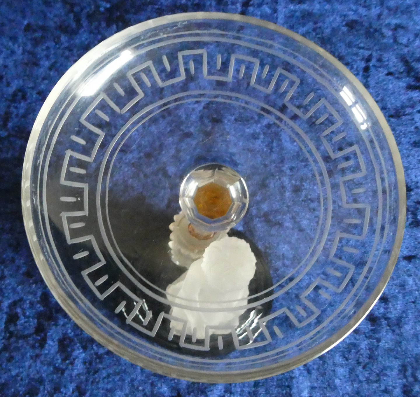 Visitkortskål på sort fod med figur af frossen glas i pæn stand.