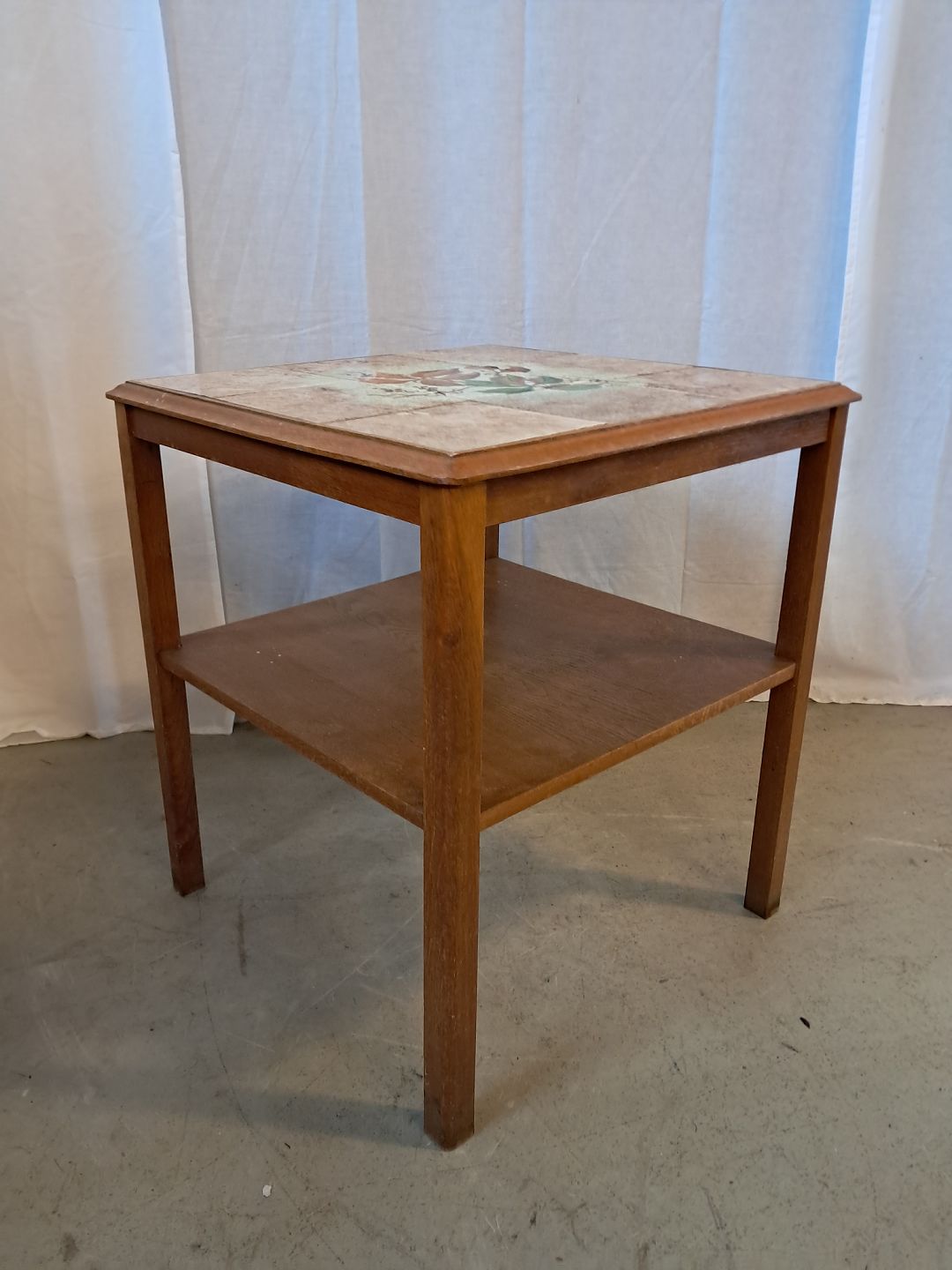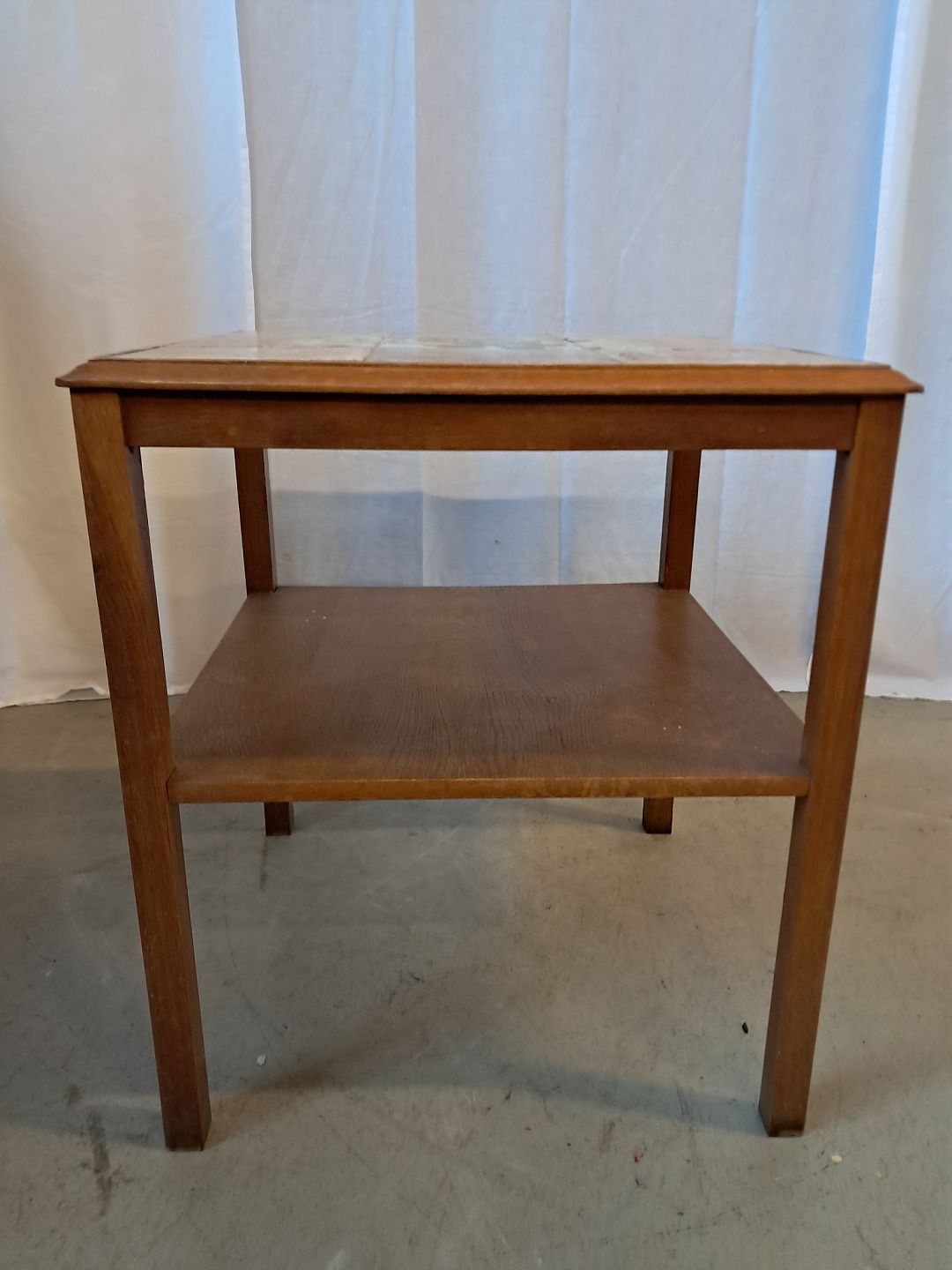 Sidebord i massivt egetræ med kakler, fra 1940erne.