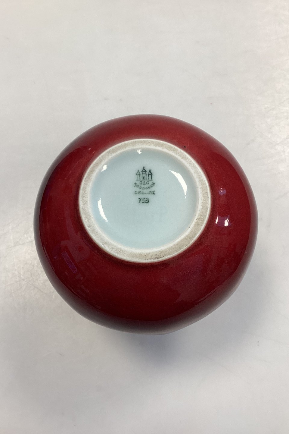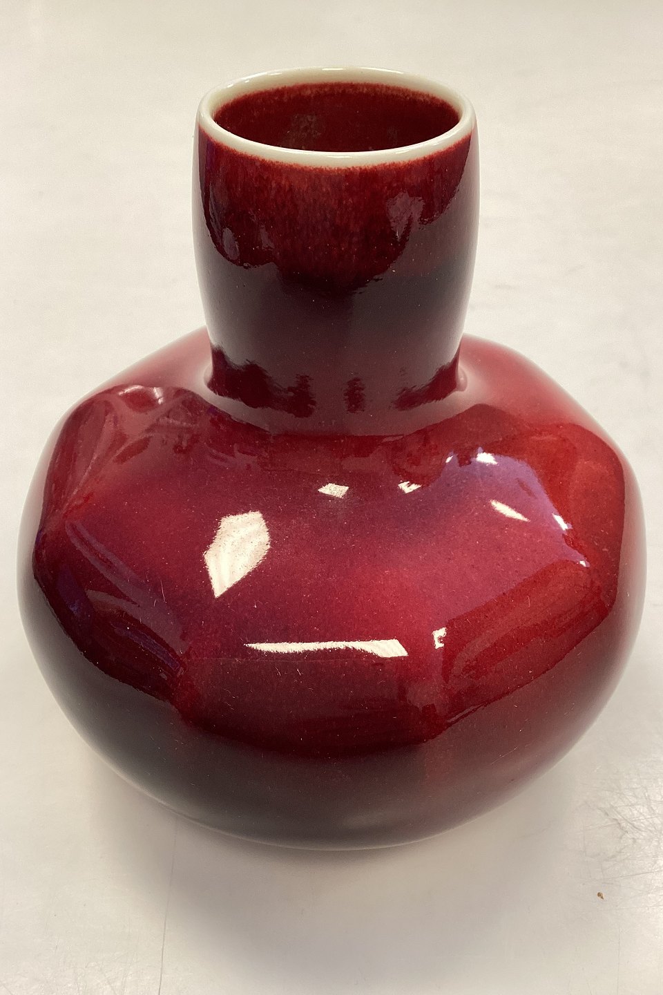 Bing and Grøndahl Vase in oxblood glaze No.753. Designed by Lisbeth Munch-Petersen. Marked LM-P under the glaze. Varying red shades.