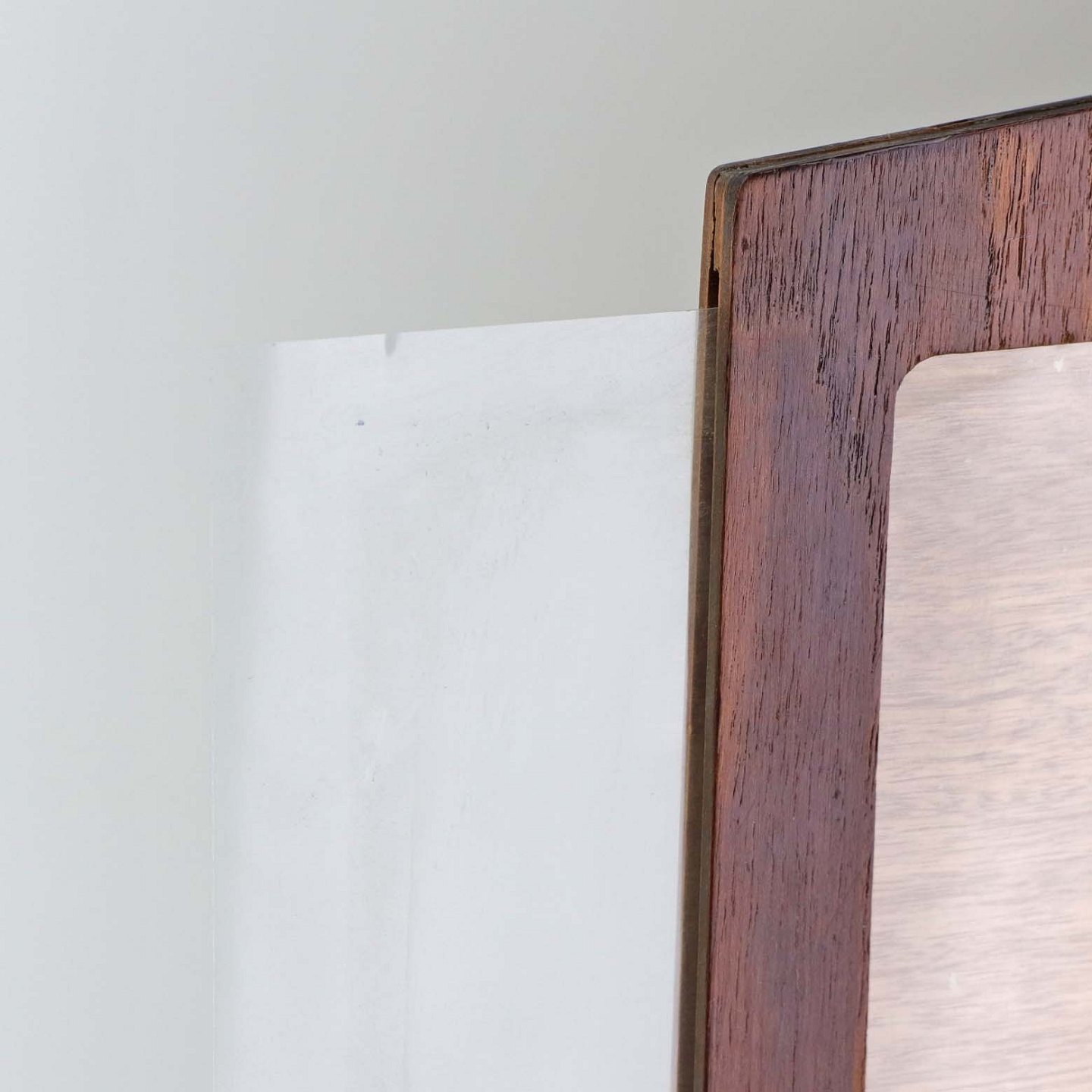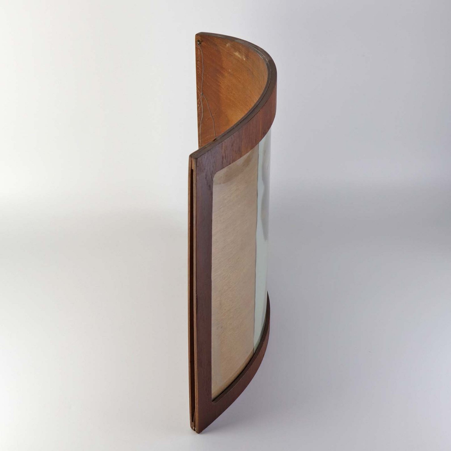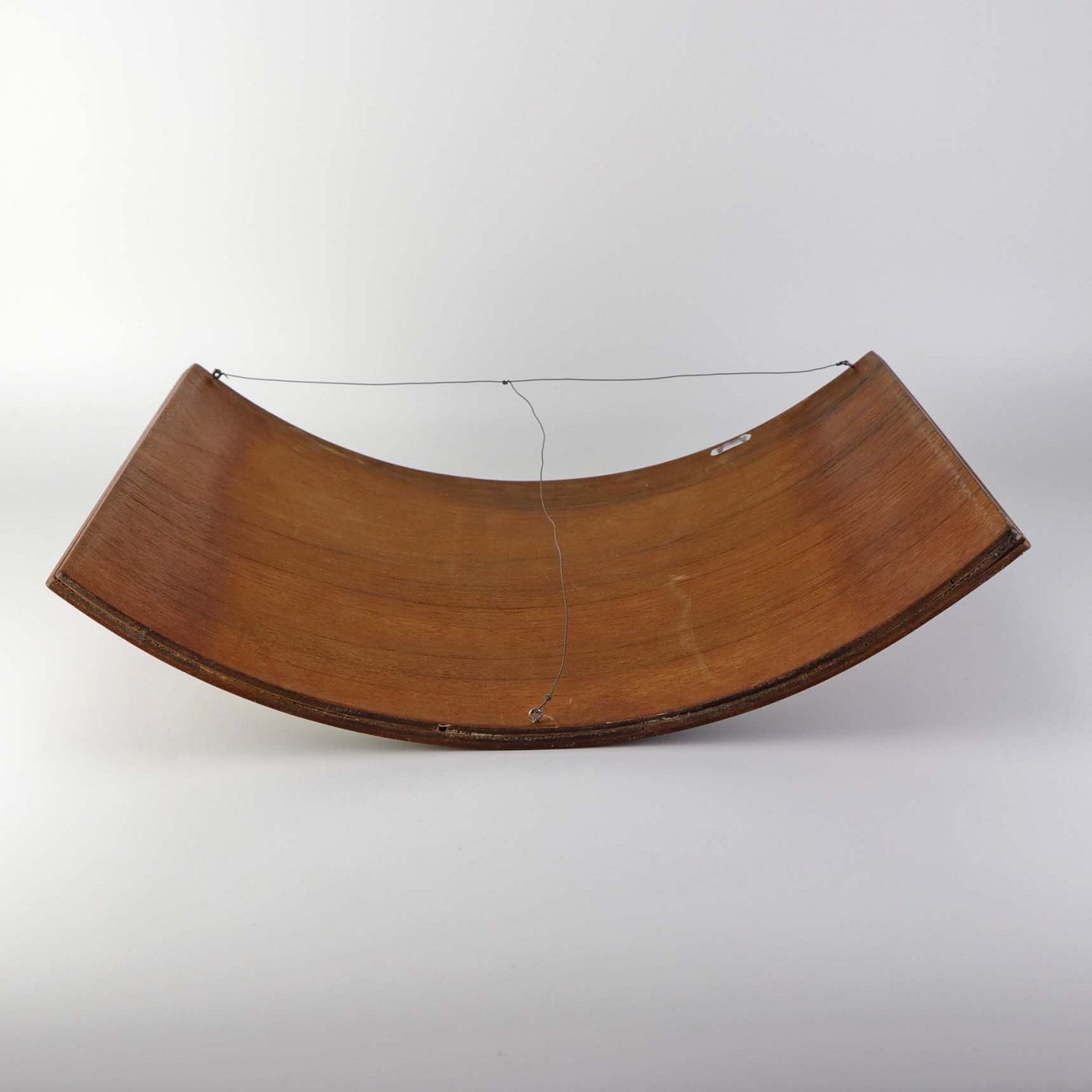 Indrammet tryk bag blødt past i buet ramme i teaktræsfiner. Trykket er mærket Frisørkunst.
