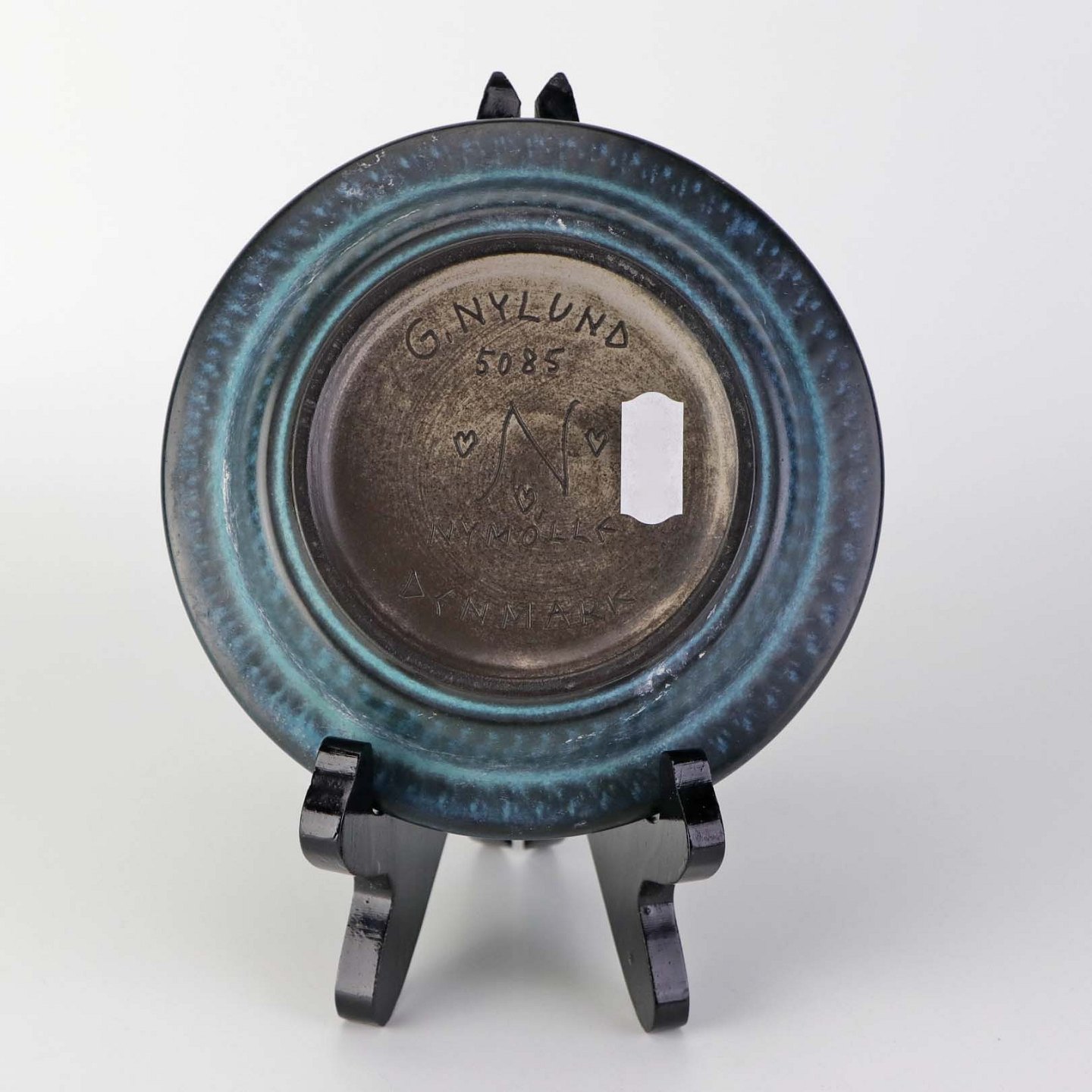 Mindre skål i blågrøn glaseret stentøj. Nr. 5085