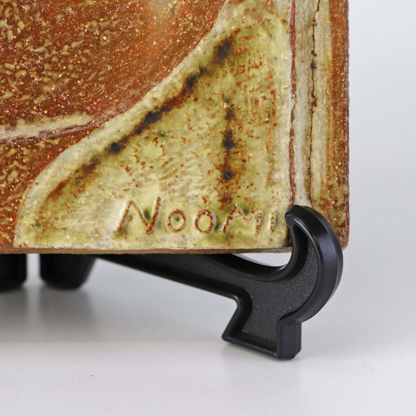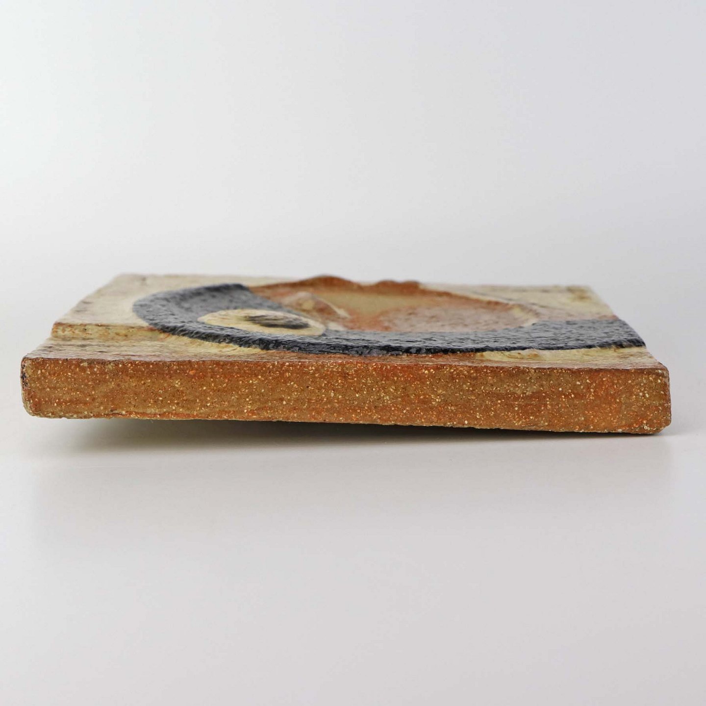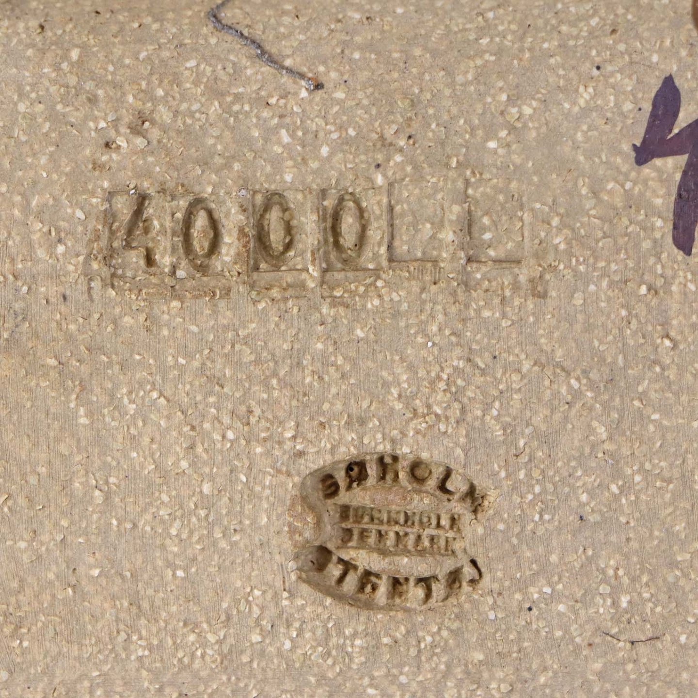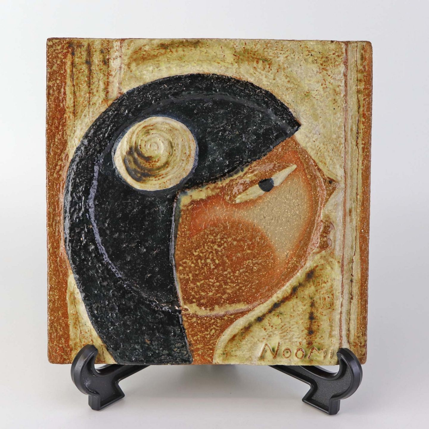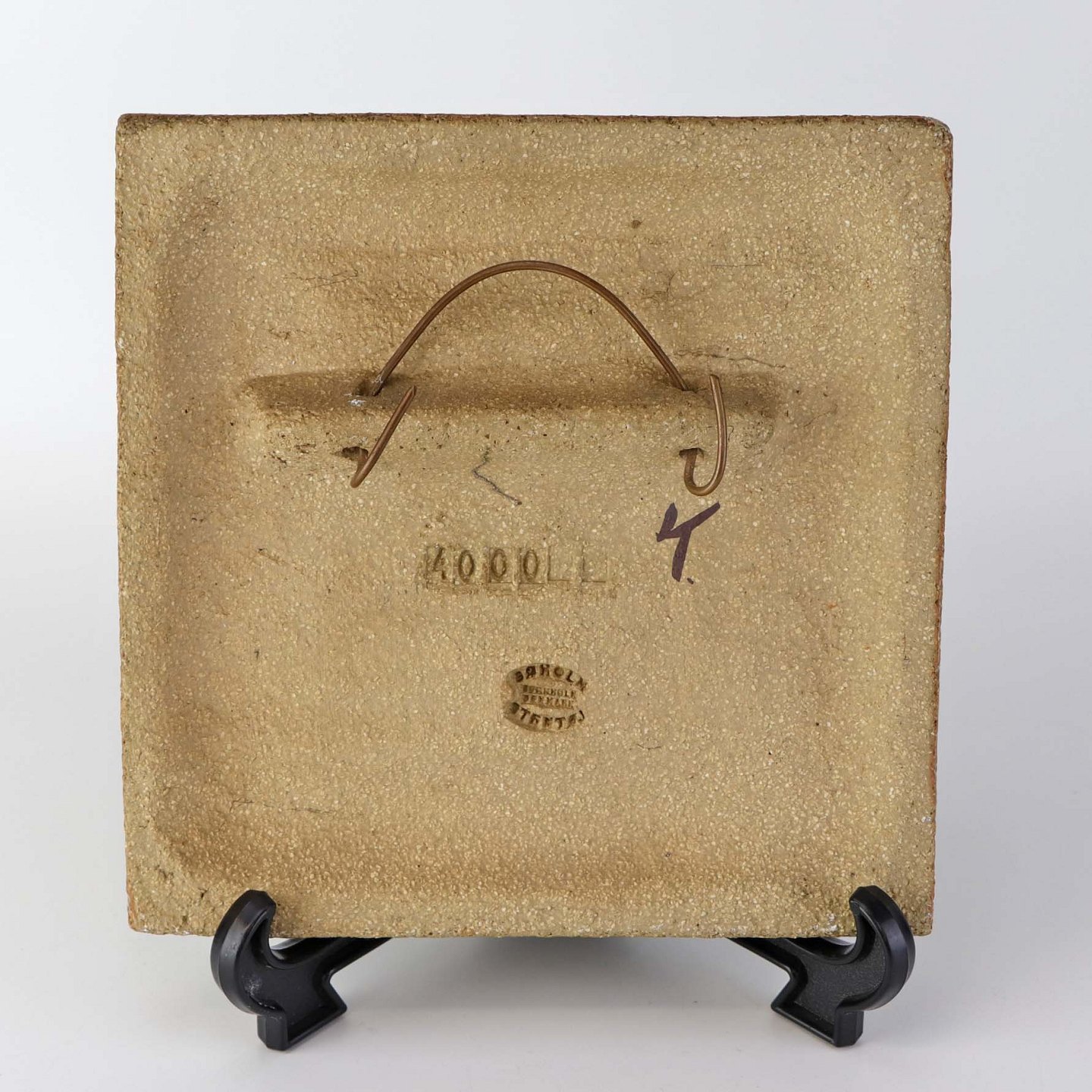 Relief i glaseret stentøj med motiv af kvinde i profil med hvid blomst i håret. Nr. 4000
