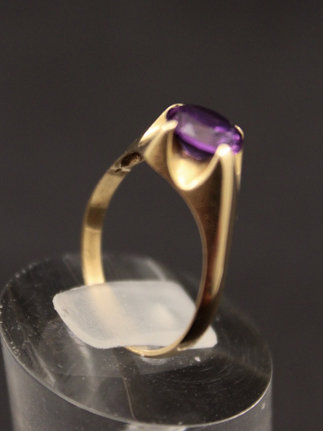 14 karat guldring med ametyst størrelse 54-55 stemplet 585 JøN for guldsmed Jørgen Nielsen Aarhus emne nr. 612217