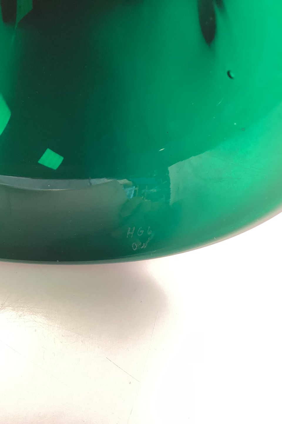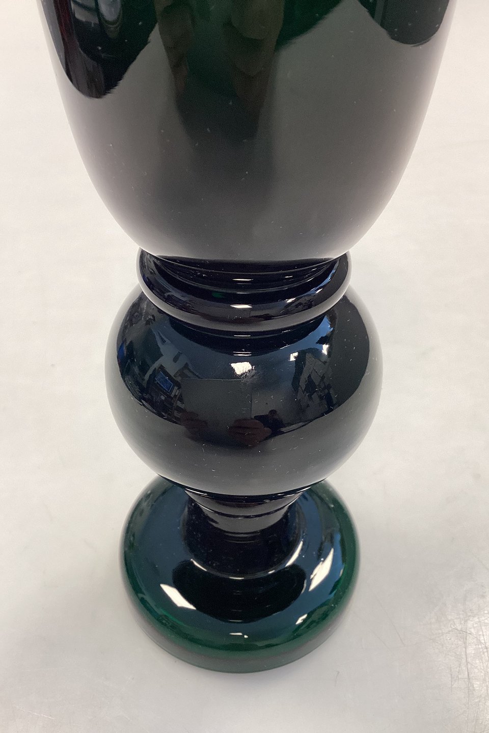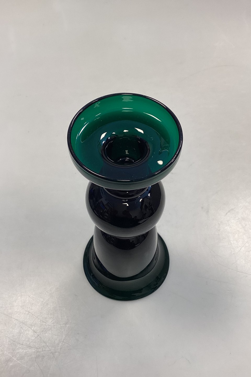Holmeaard glas Lysestage/Vase 1976. Designet af Ole Winther. Oprindelig årsstage med julemotiv i guld foran. Denne er formodentlig et prøveeksemplar. Farve: Flaskegrøn. Signeret HG6 OW. Kan bruges som stage eller vase.