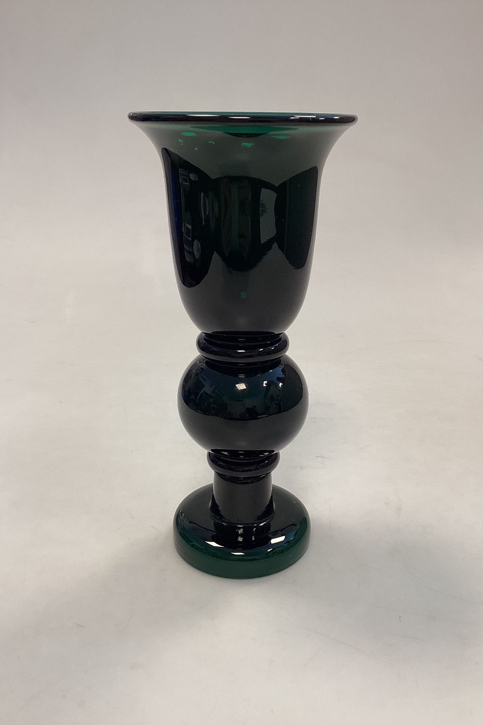 Holmegaard glas Candlestick/Vase 1976. Designed by Ole Winther. Original candlestick with Christmas motif in gold on the front. This is probably a sample. Color: Bottle green. Signed HG6 OW. Can be used as a candlestick or vase.