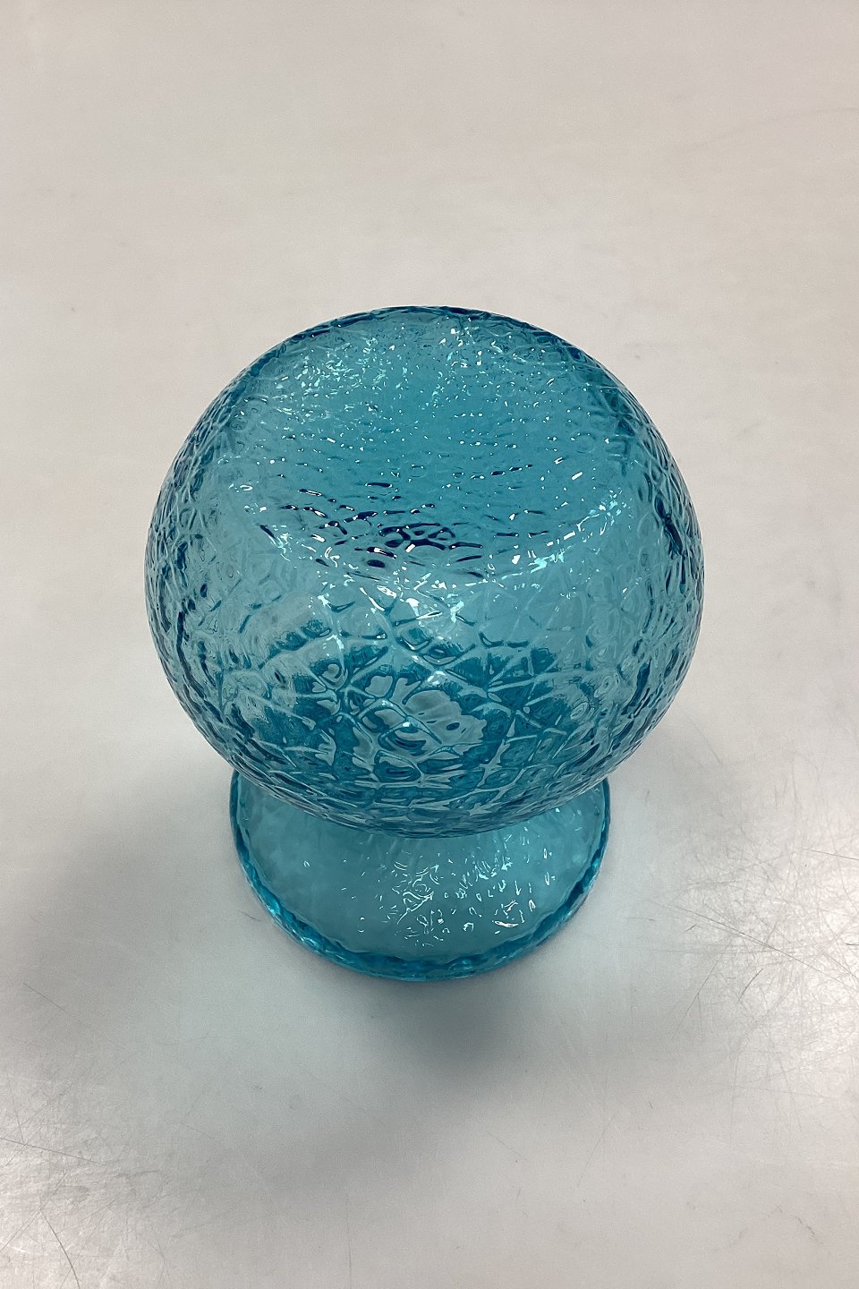 Turkisblå Blomsterløg Vase Holmegaard / Kastrup / Fyens Glasværk. Ruflet optik. Egnet til hyacinter, tulipaner etc. Sjælden farve. Små afslag på kanten, se fotos.