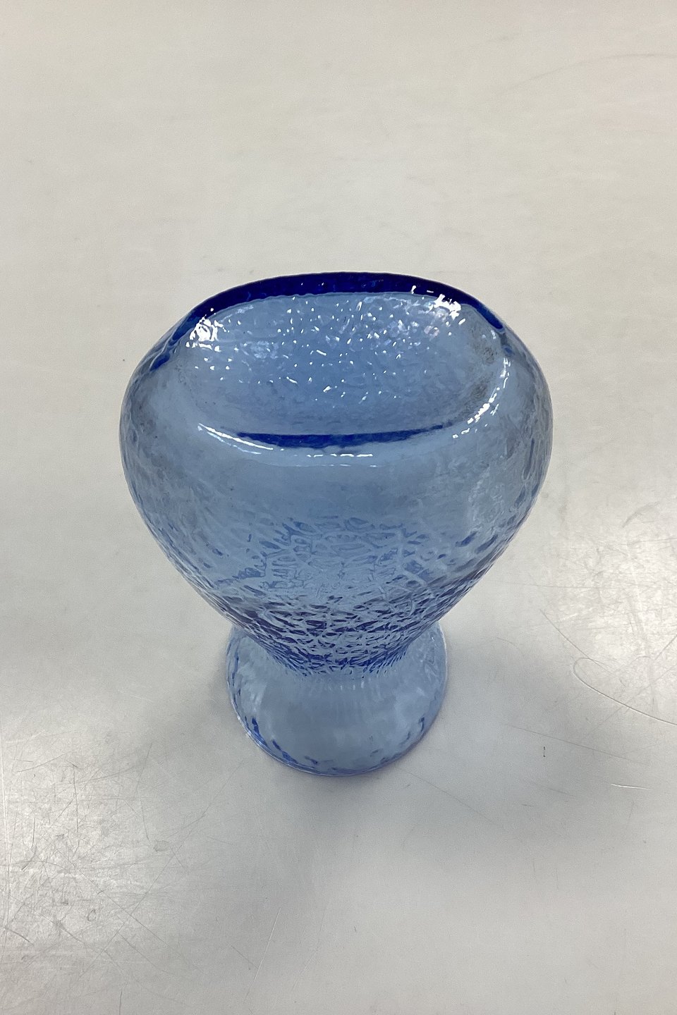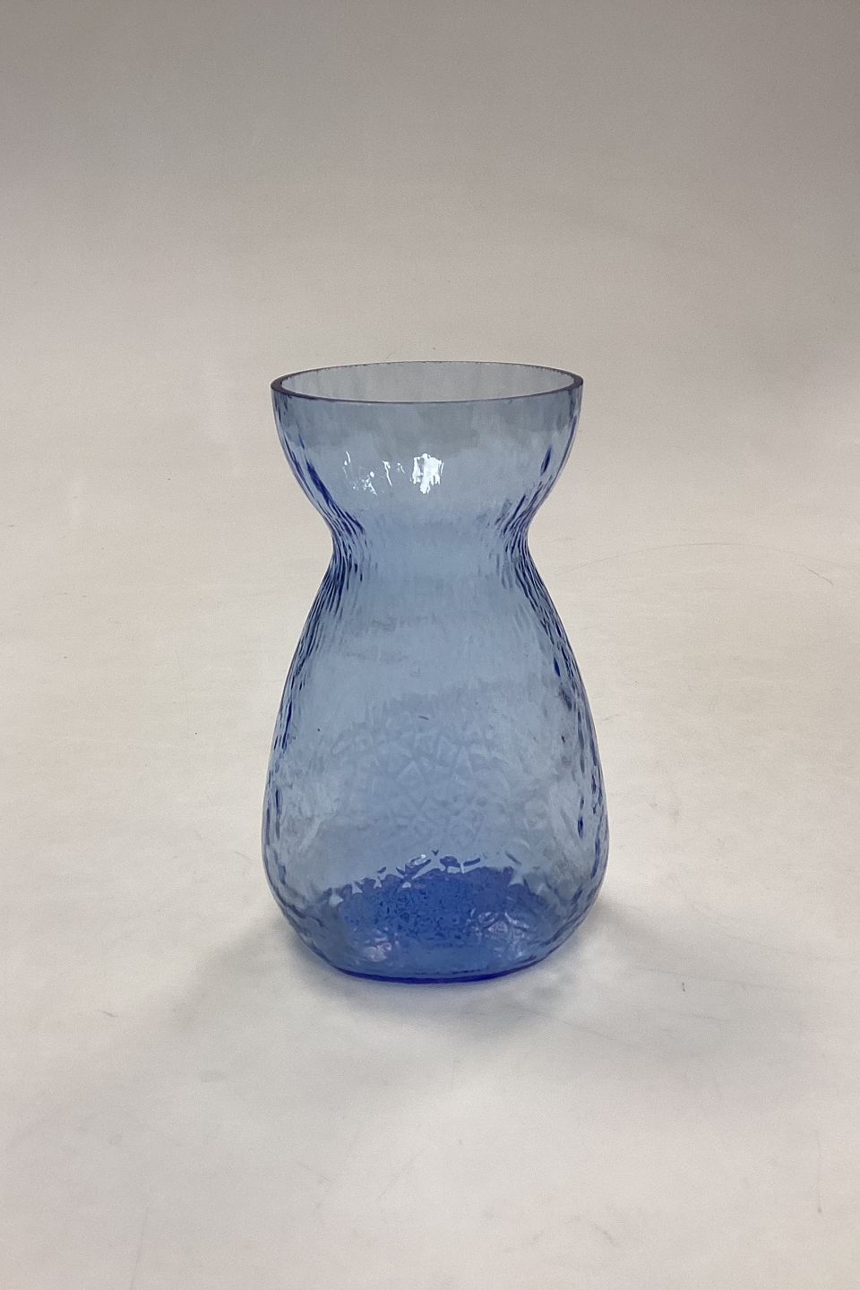 Light Blue Flower BulbVase from Fyens Glass Works. Manufactured from approx. 1960. Ruffled look. Suitable for hyacinths, tulips etc. and narrow enough to fit between window and secondary window.