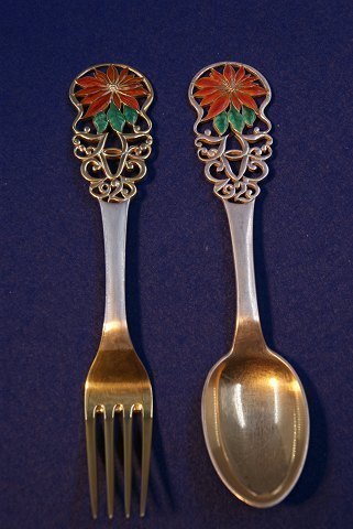 Michelsen sæt Juleske og Julegaffel 1925 i forgyldt sølv
