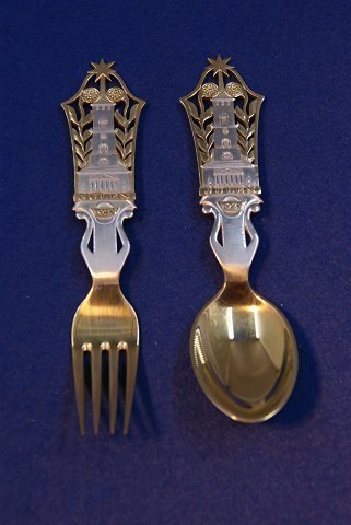 Michelsen sæt Juleske og Julegaffel 1923 i forgyldt sterling sølv