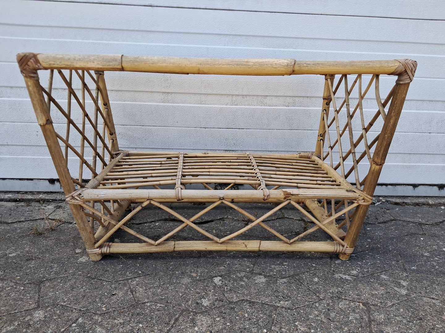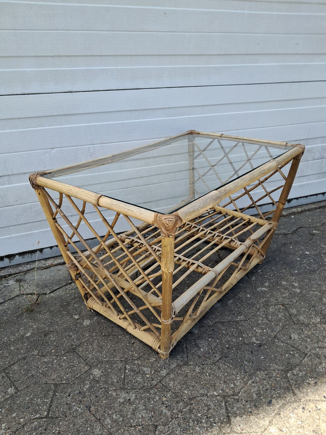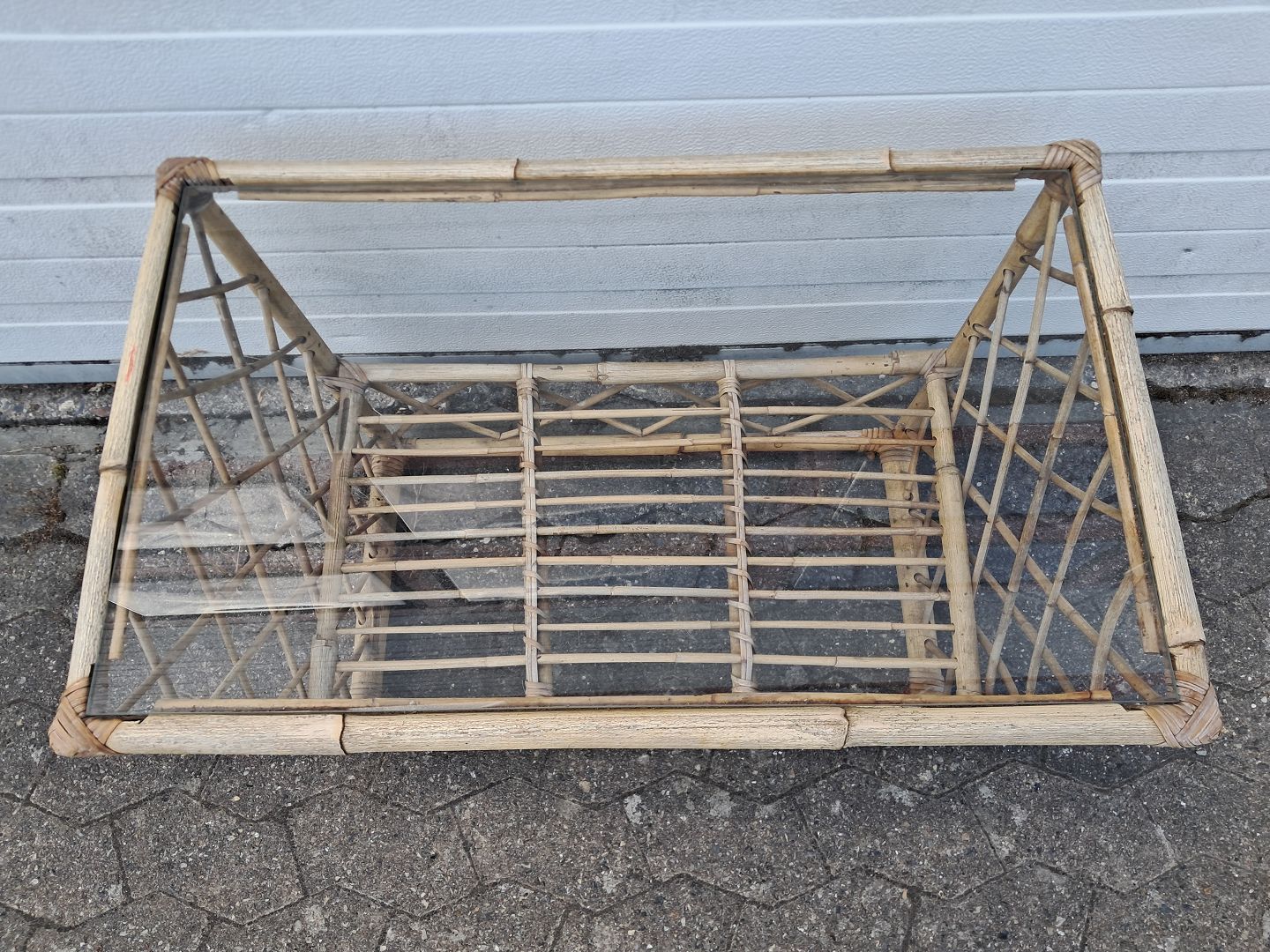 Sofabord i bambus med glasplade, fra 1970erne.