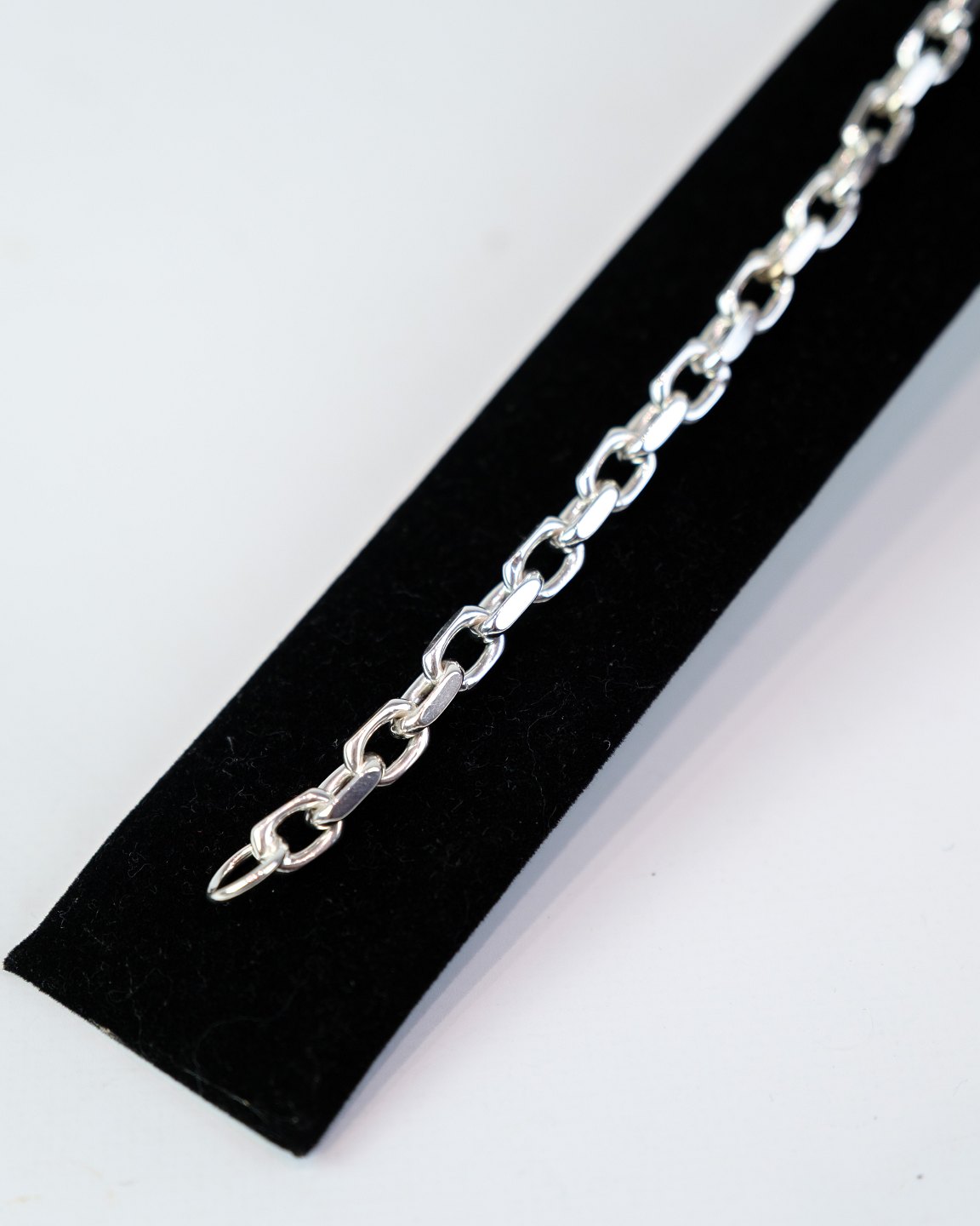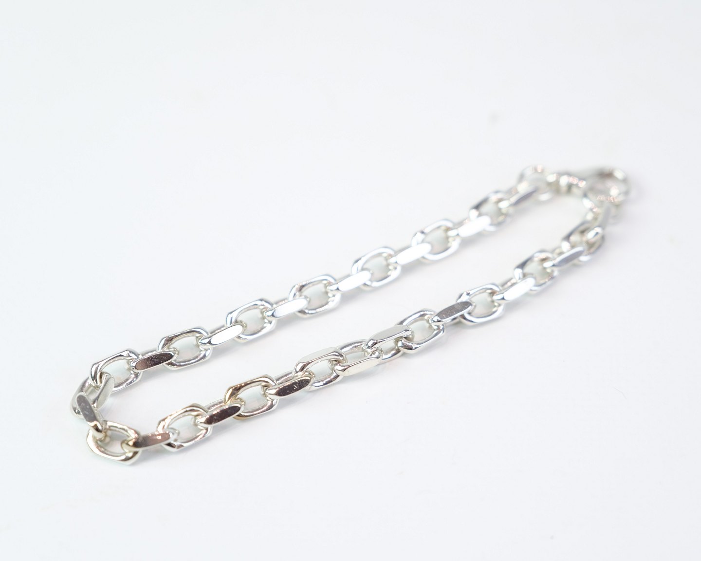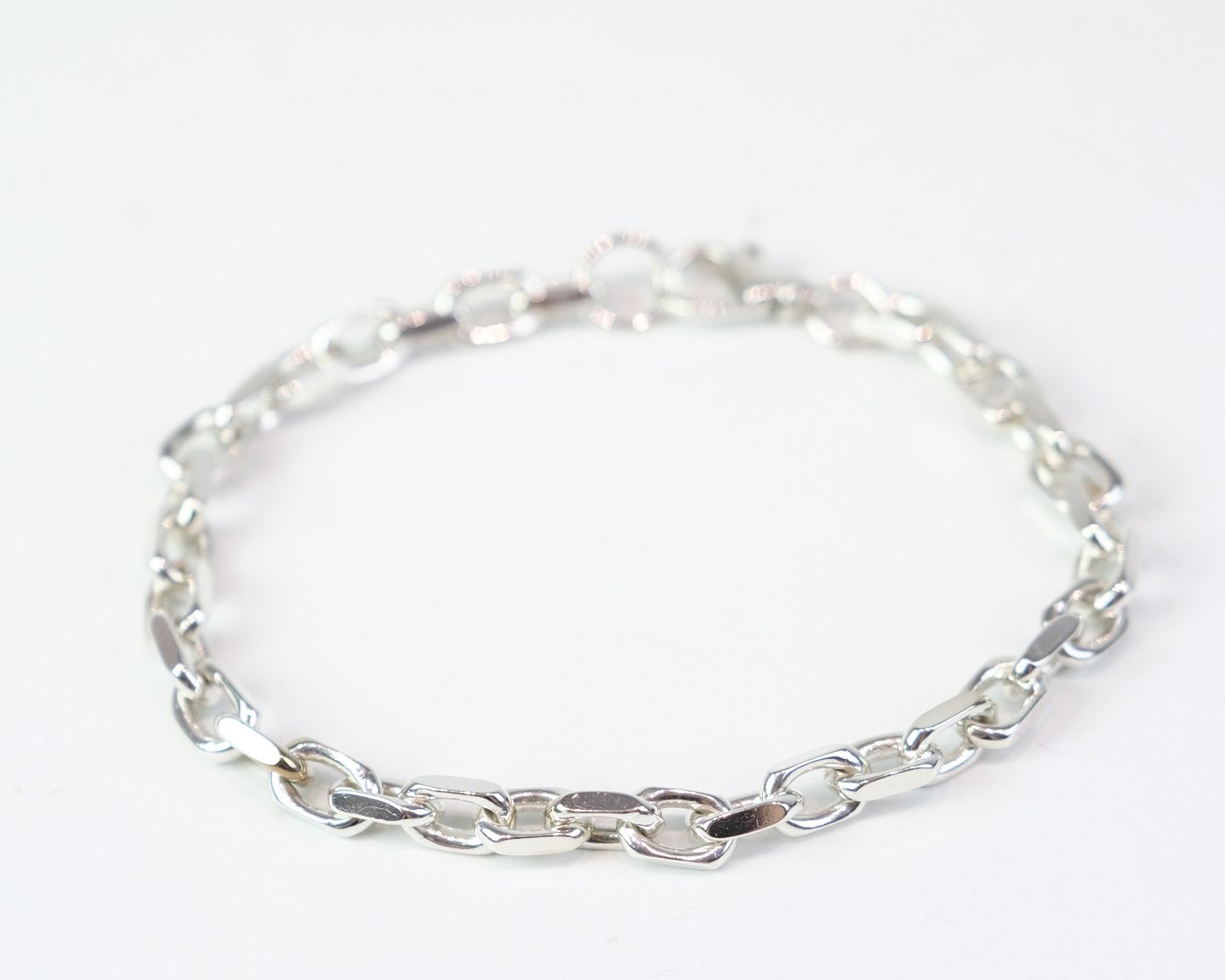 Armbånd/armlænke i sølv, anker facet, med karabinlås. L: 25 cm, bredde 5 mm. Vægt: 31,3 g. Klassisk og tidløst smykke.