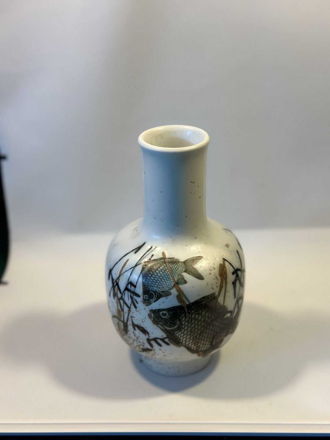 Vasen er en del af Diana vase serien fra Royal Copenhagen , kendt for dine karakteristiske fiskemotiver .