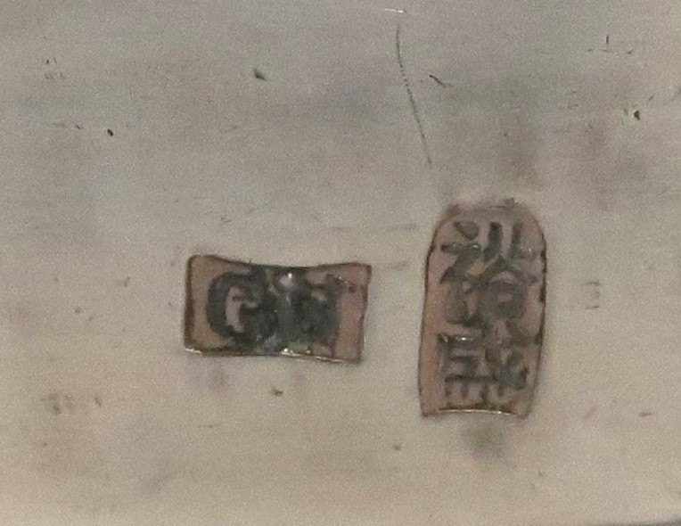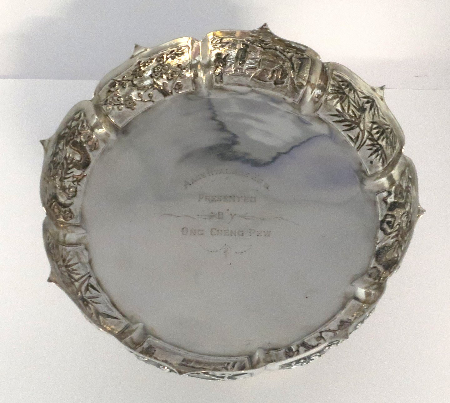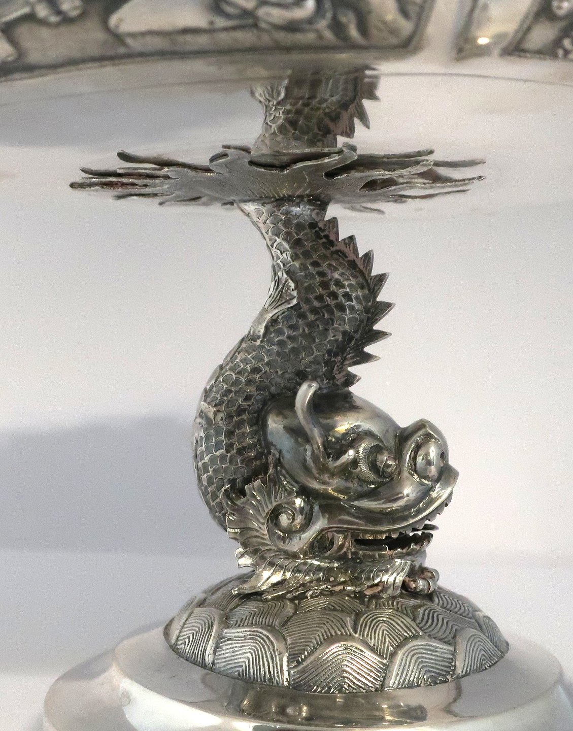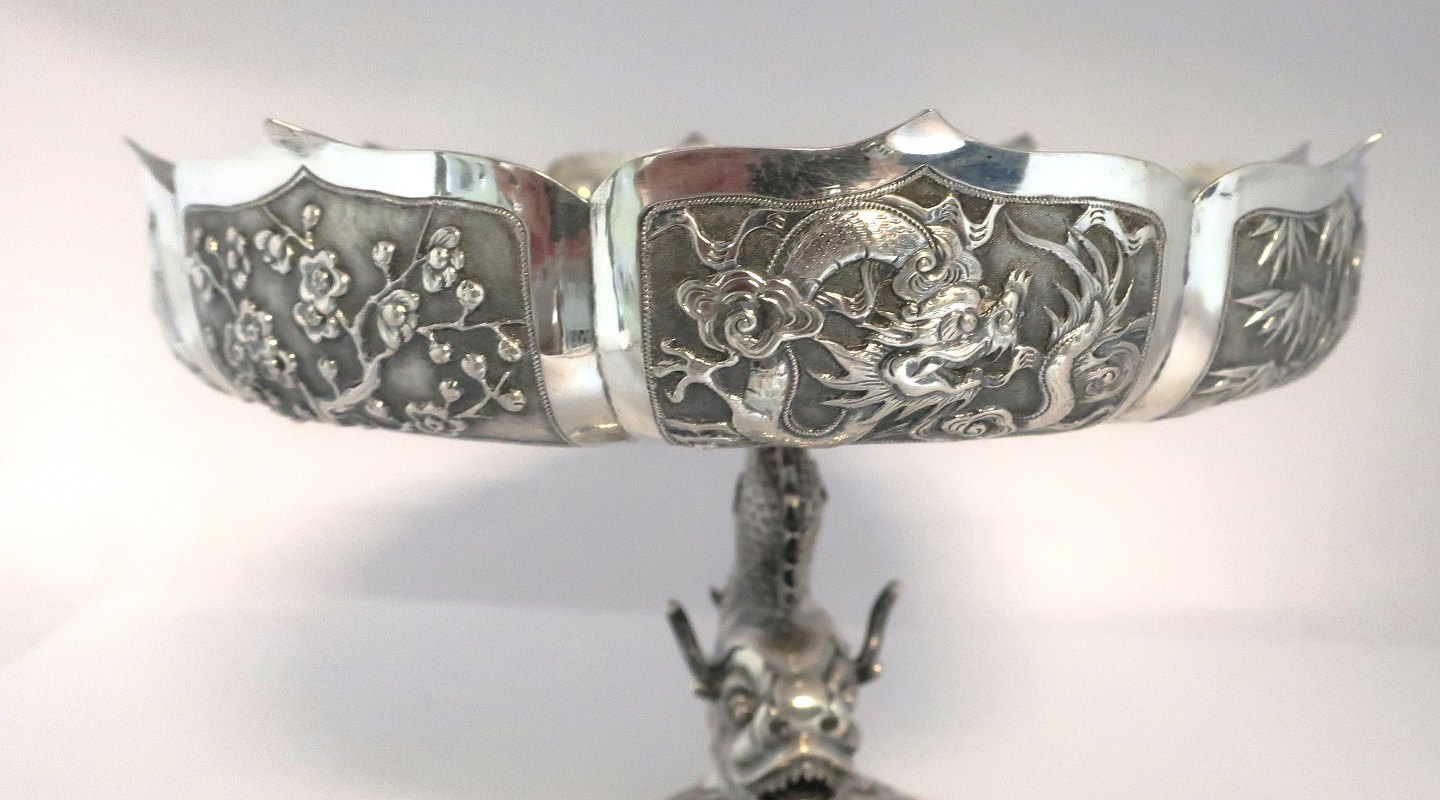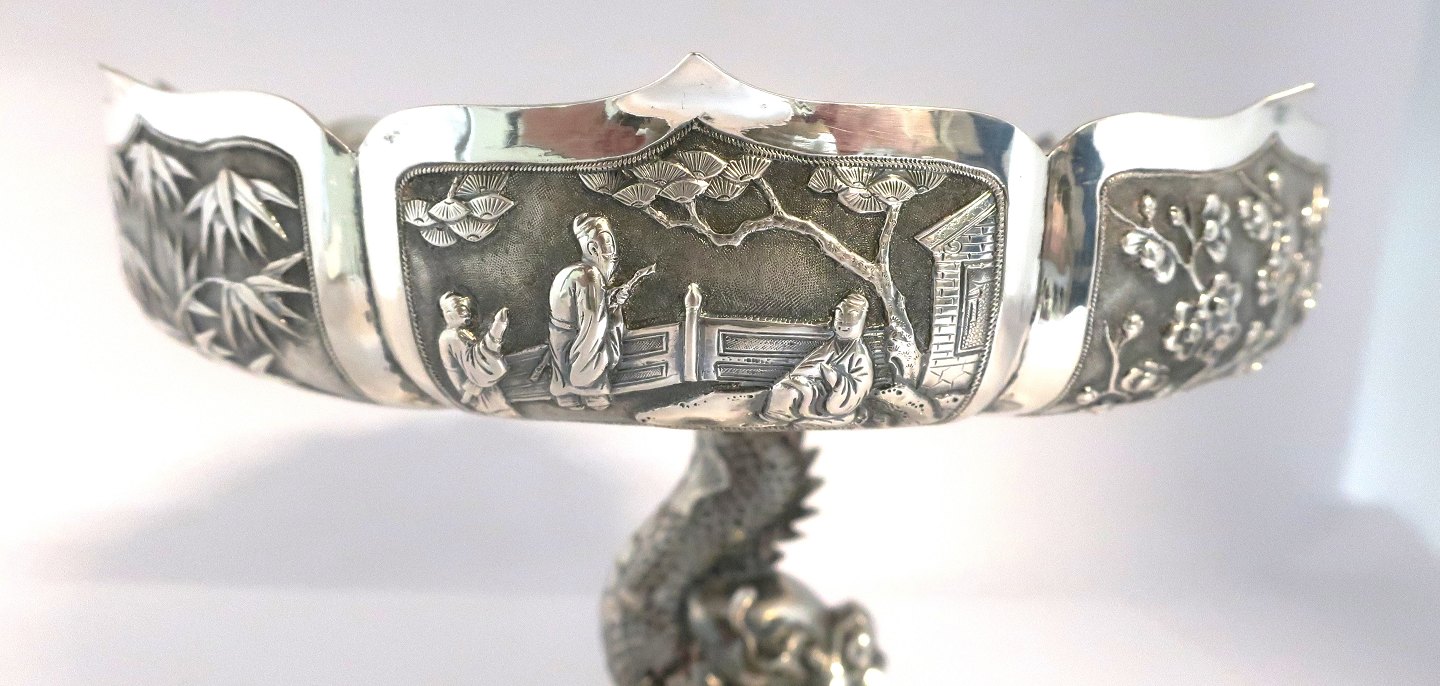 Kina. Sølvopsats (925). Højde 15 cm. Diameter på skål 19,5 cm. skålen har en indgravering.