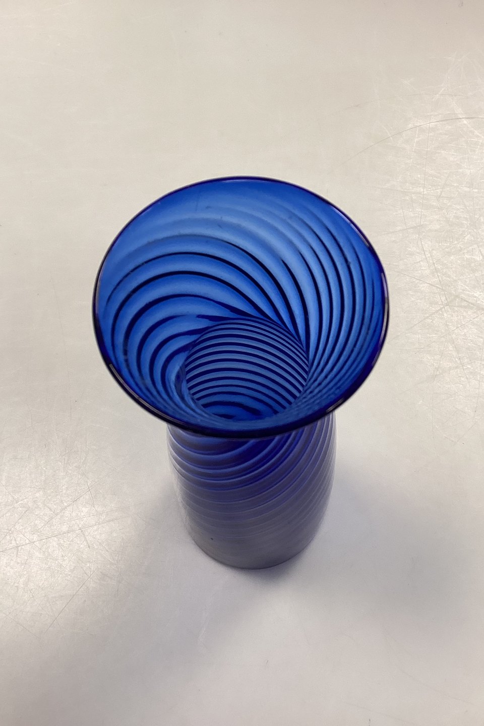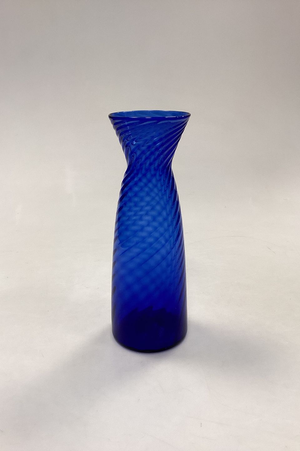 Fyens Glasværk Blå Blomsterløg Vase. Kegleform i snoet optik. Fabrikeret omkring 1910. Egnet til hyacinter, tulipaner etc.