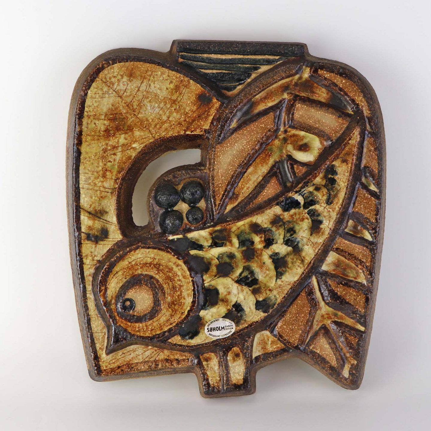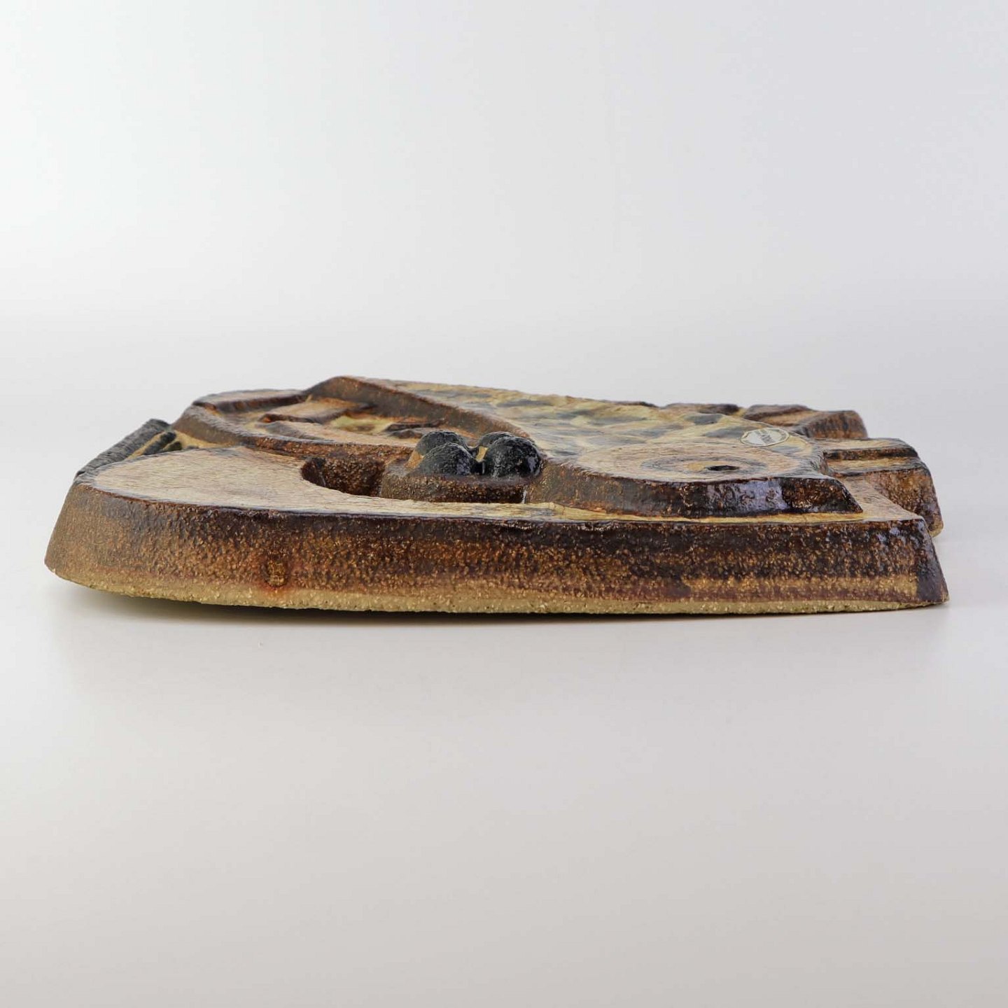 Relief i glaseret stentøj med motiv af fugl blandt blade. Nr. 3589-2