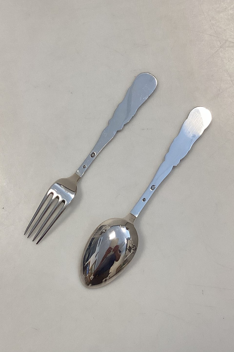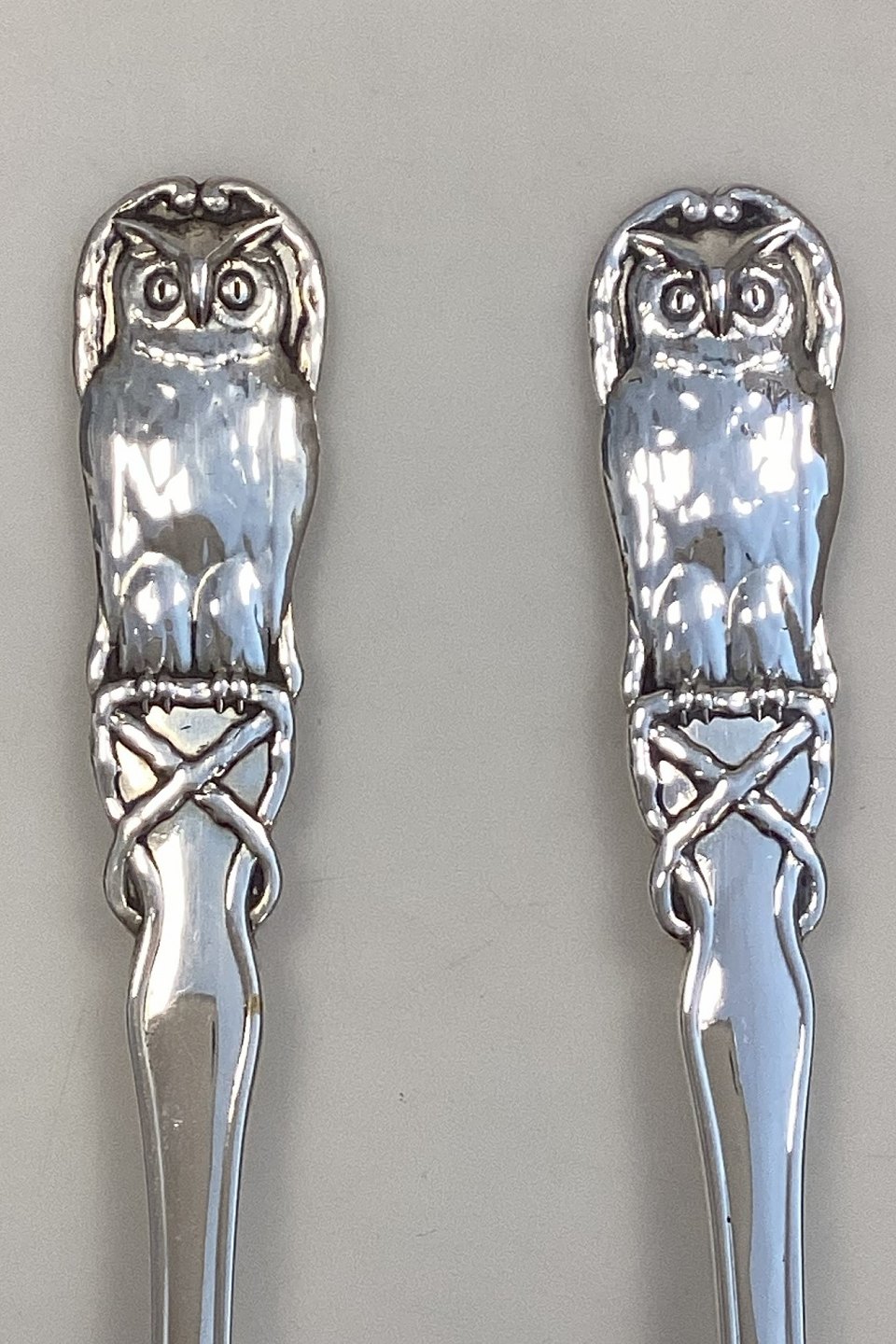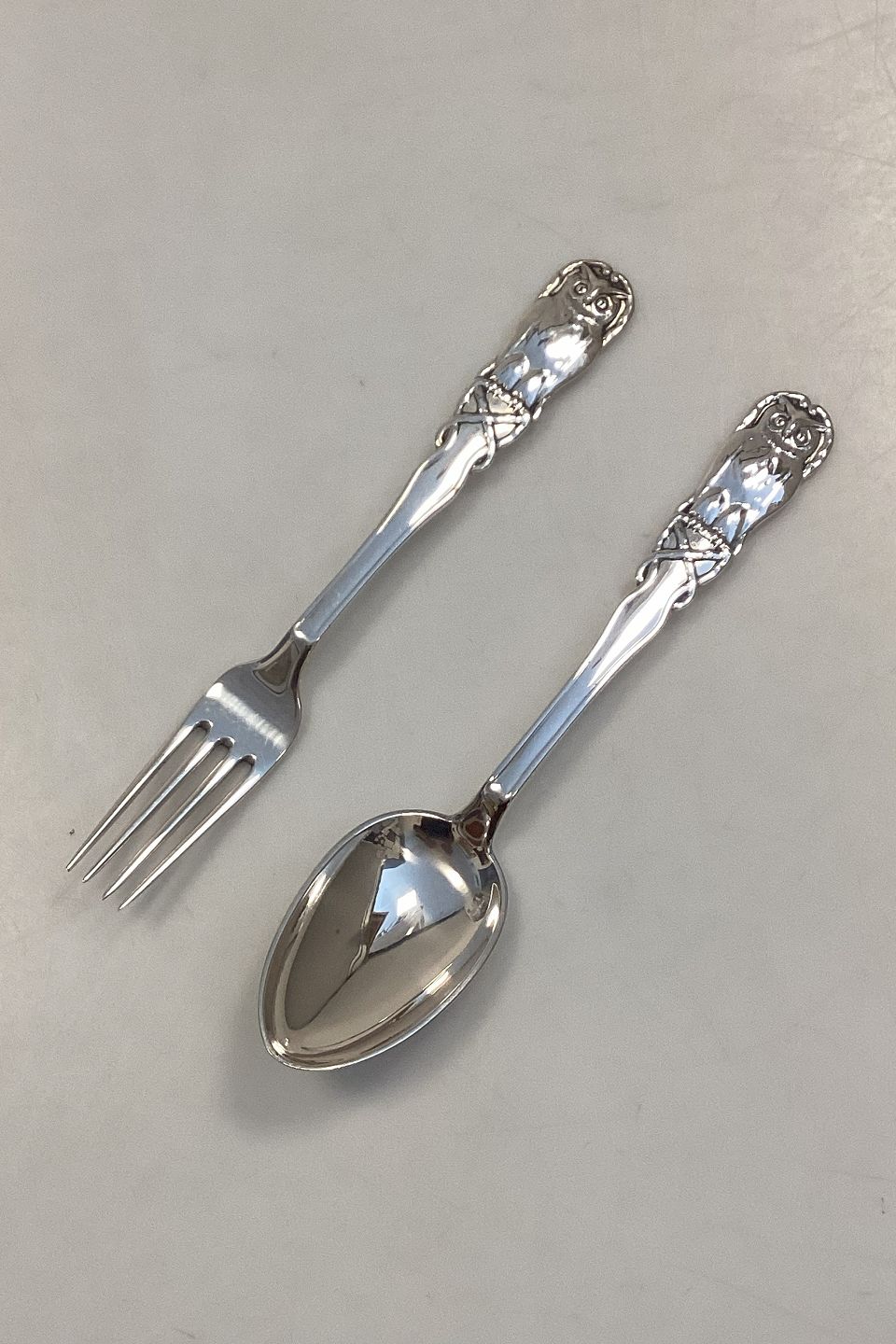 Danish Fork and Spoon set in Silver 830 with owl motif