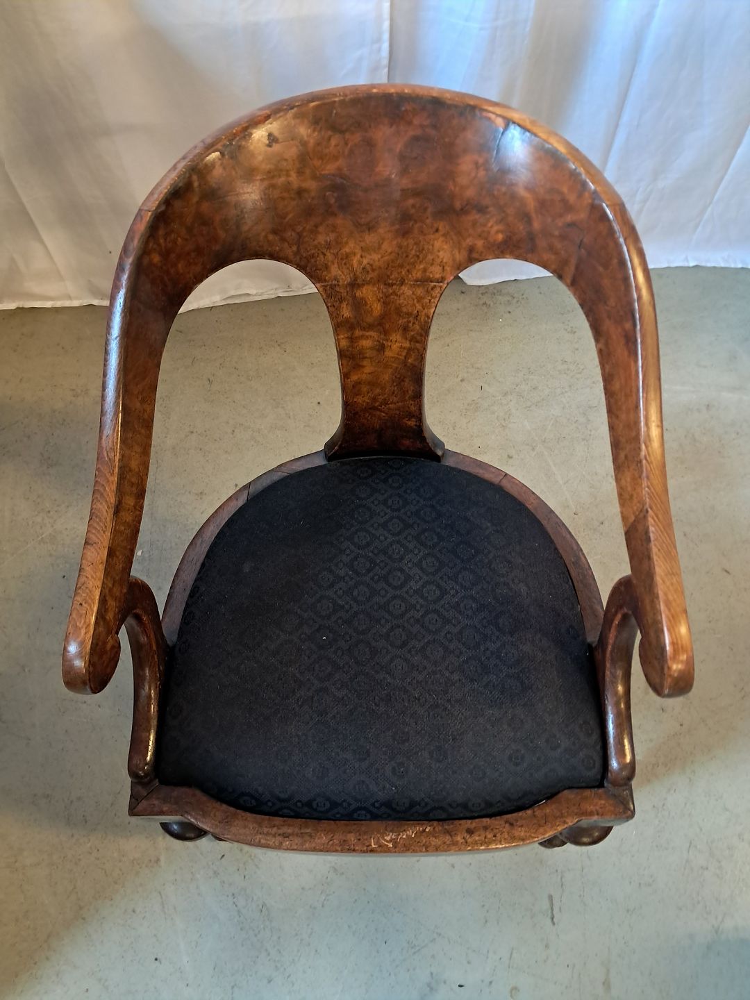 Armstol i massivt bøgetræ med fineret rodtræ, fra 1910erne.