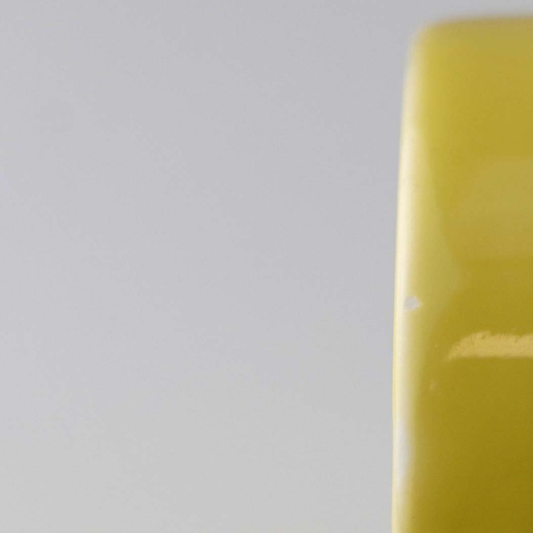 Stellet er fremstillet i ildfast glat porcelæn dekoreret med gul glaseret yderside og hvid glaseret inderside.