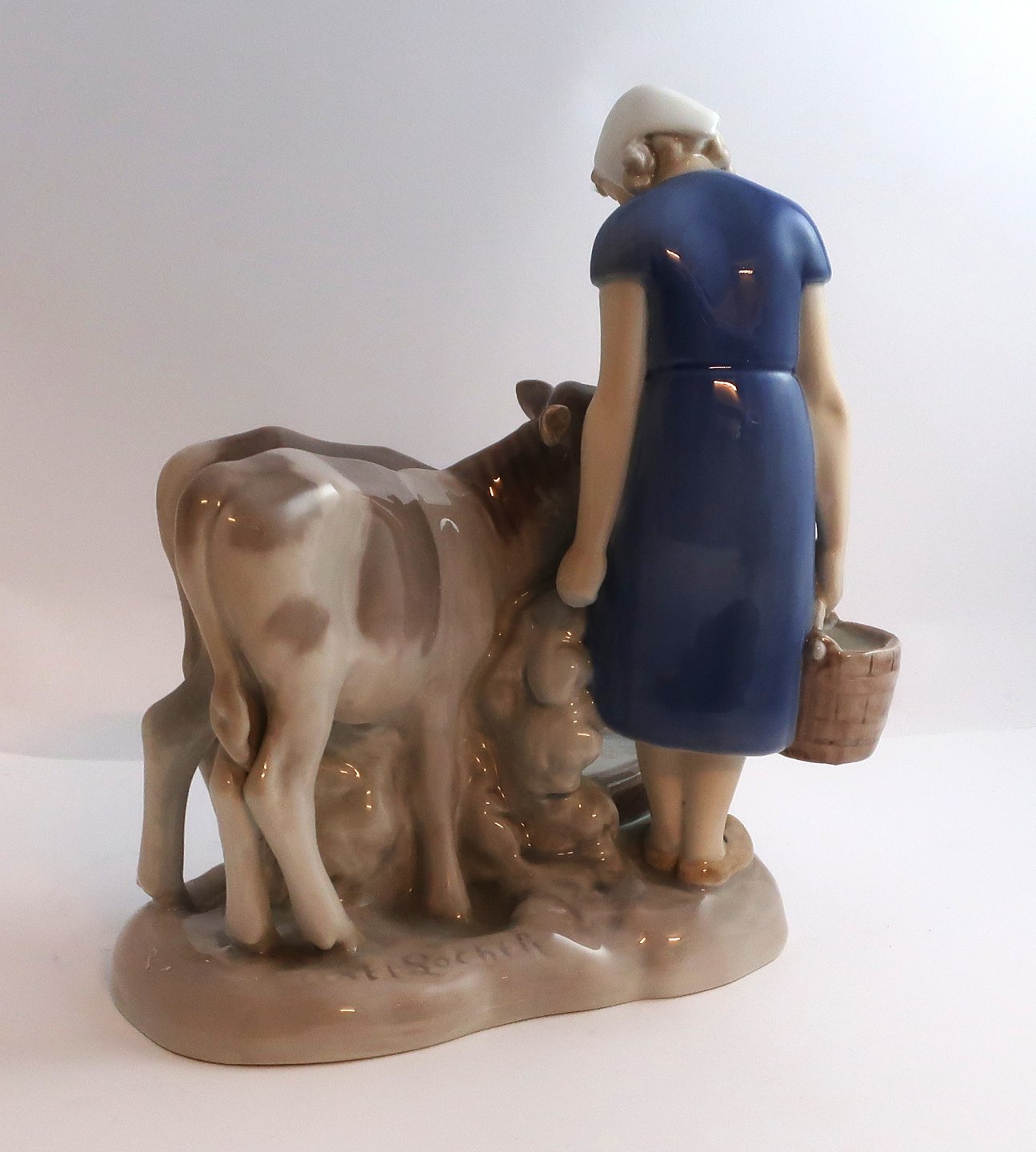Bing & Grøndahl. Porcelænsfigur. Pige med kalve. Model 2270. Højde 20,5 cm. (2 sortering).
