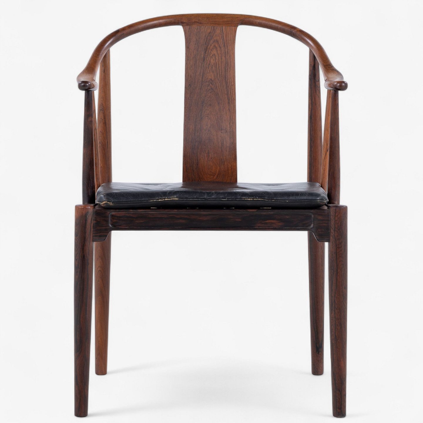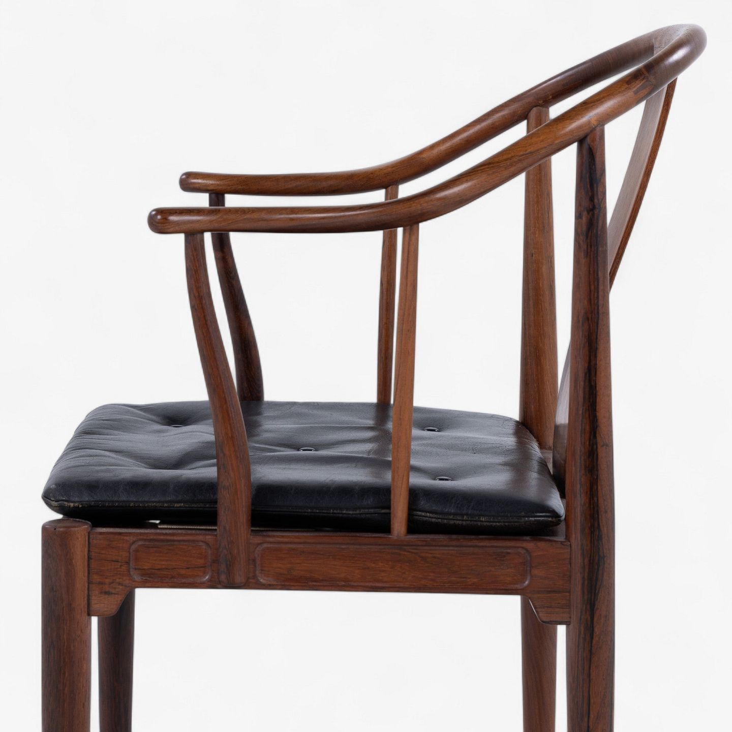 Kinastol i Rio-palisander med hynde i patineret sort læder.
