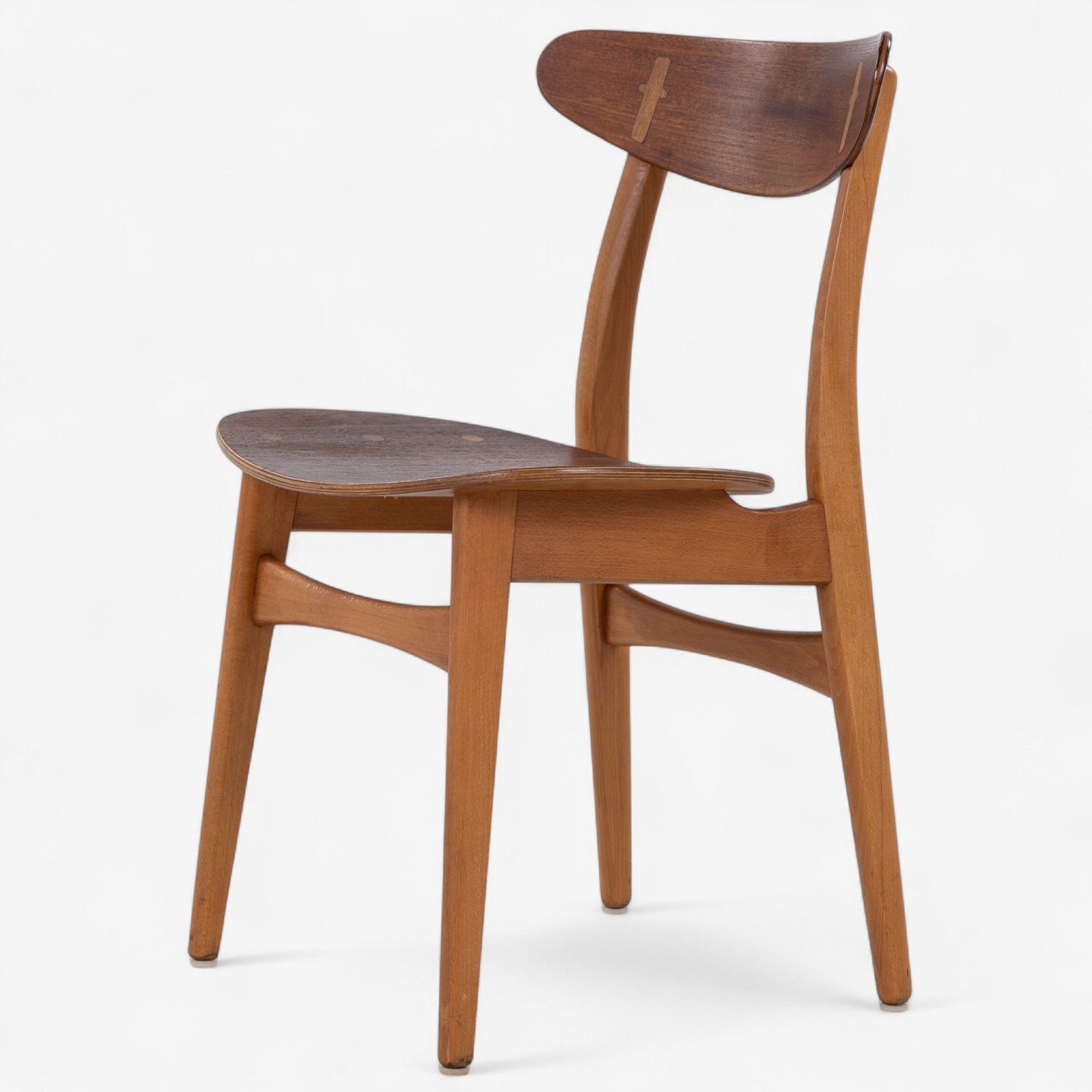 CH 30 - Spisestol med stel i patineret bøg og kopstykke i teak.
