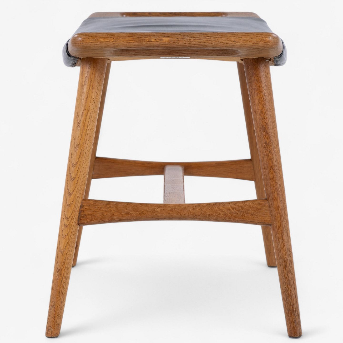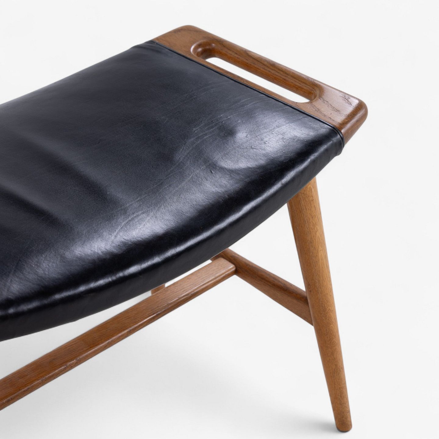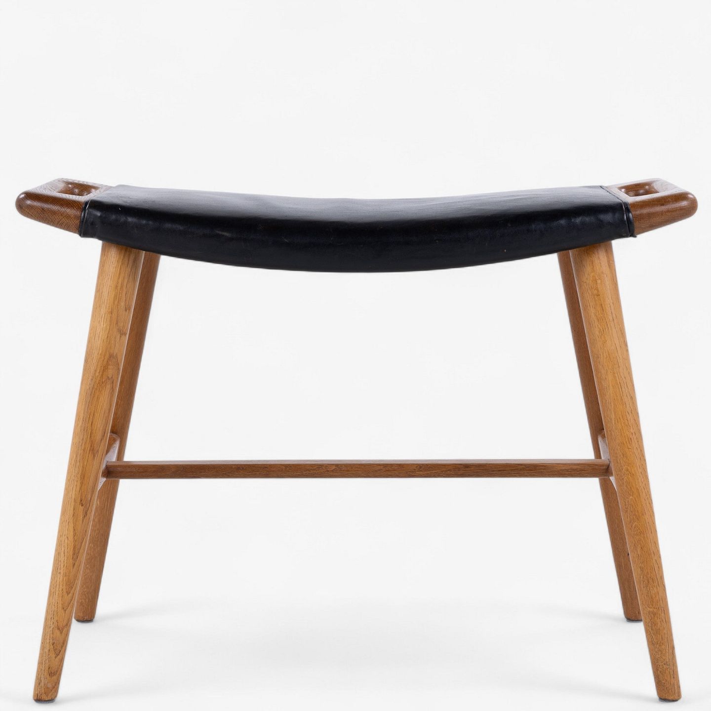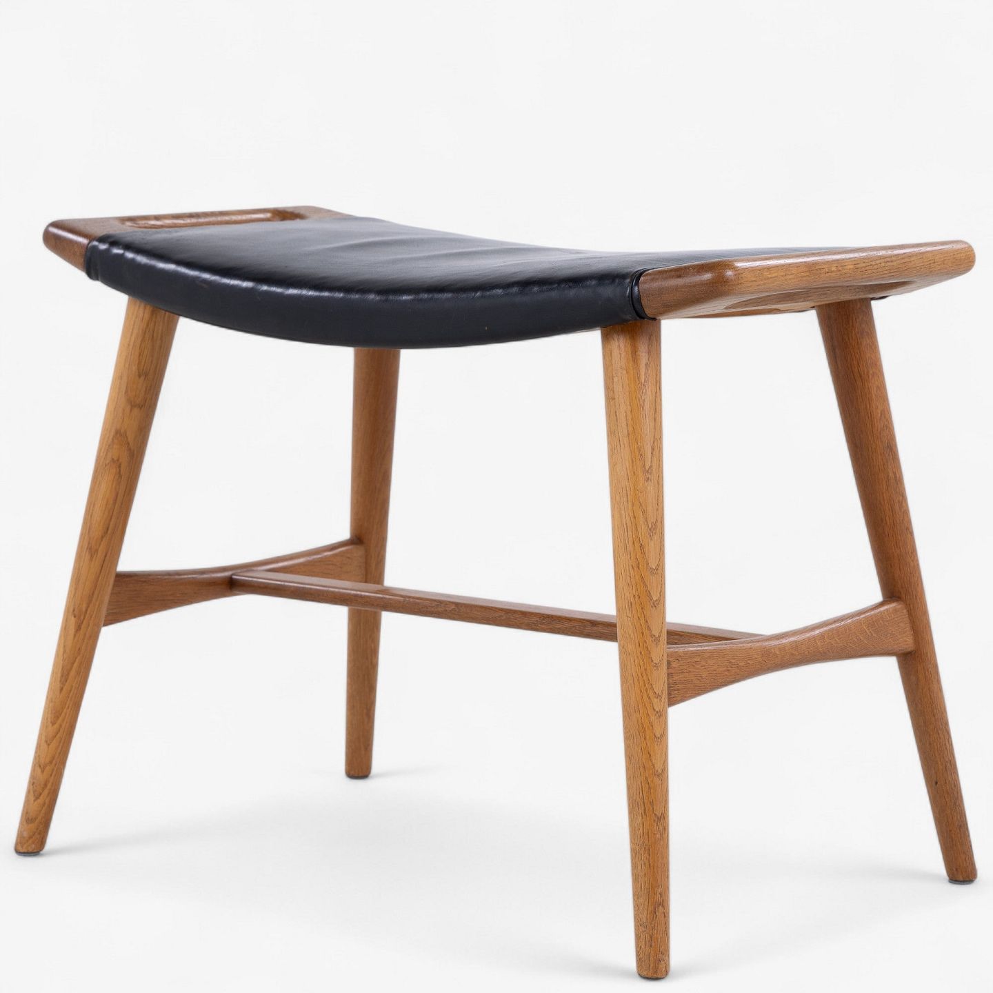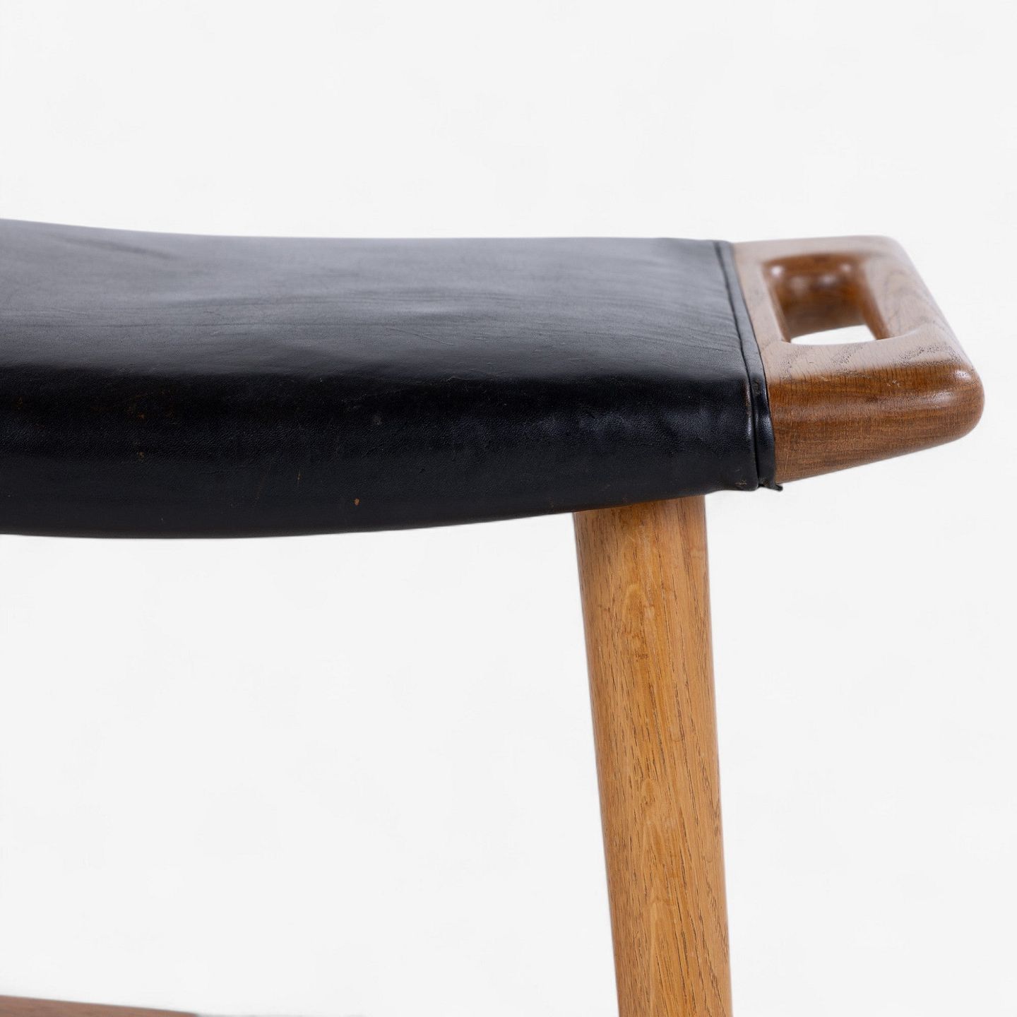 AP 30 - Klaverskammel i eg med sæde i patineret sort læder.