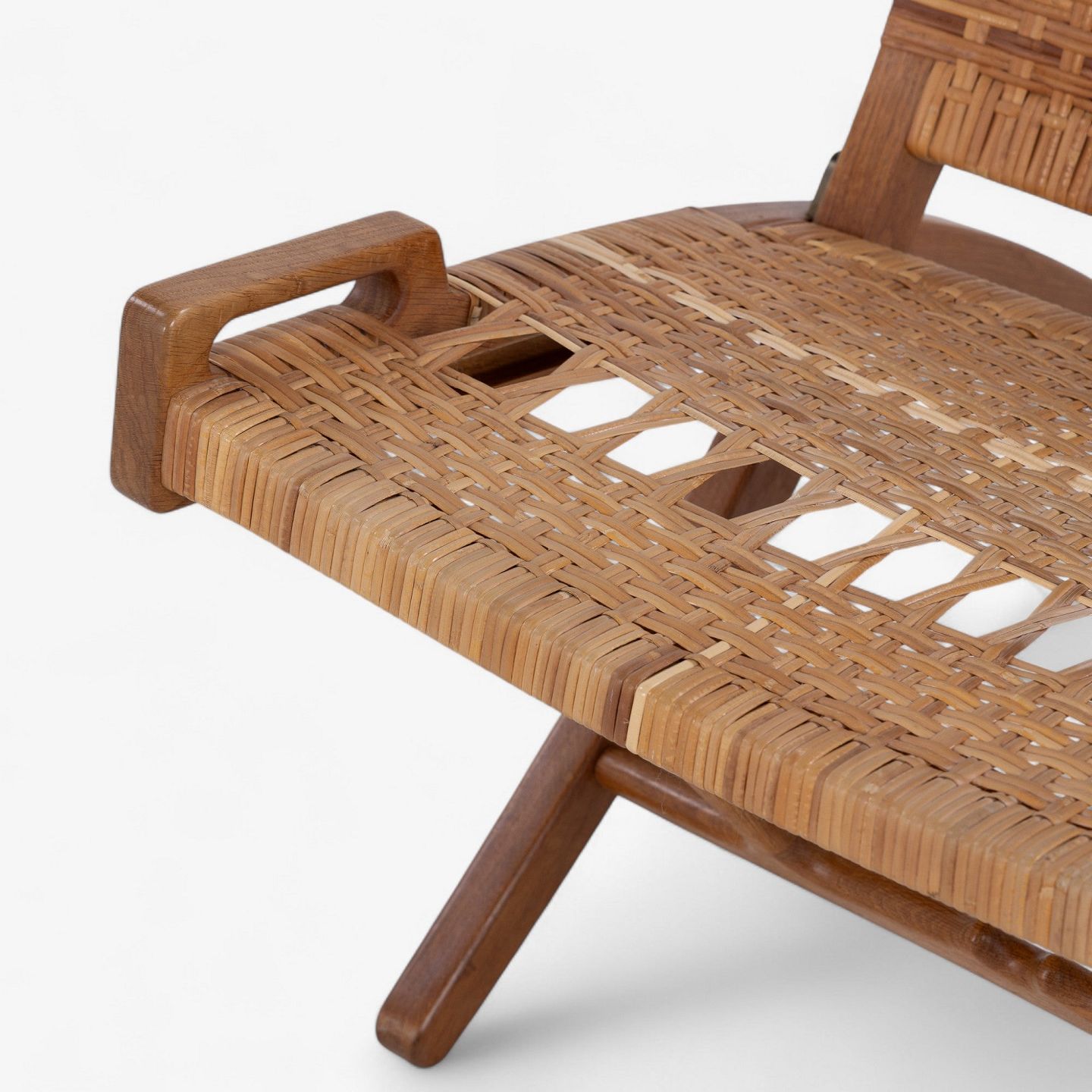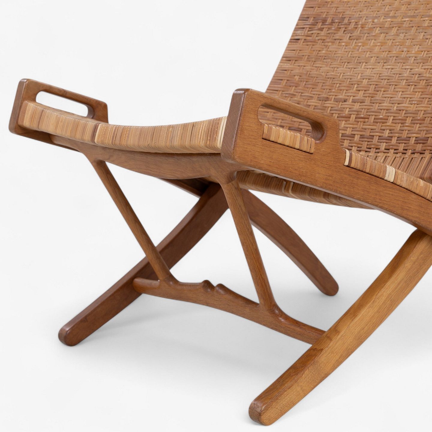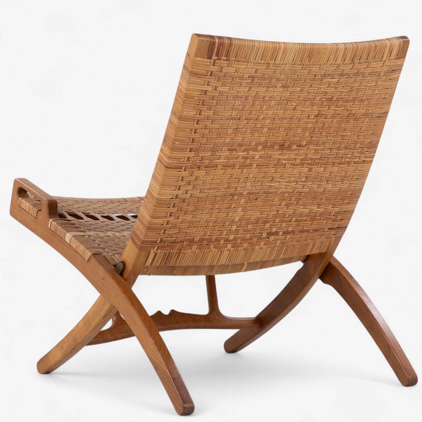 JH 512 - 'Kamin'-foldestol i patineret egetræ med sæde og ryg i delvist originalt flet. Original krog til vægophæng medfølger. Formgivet i 1949.