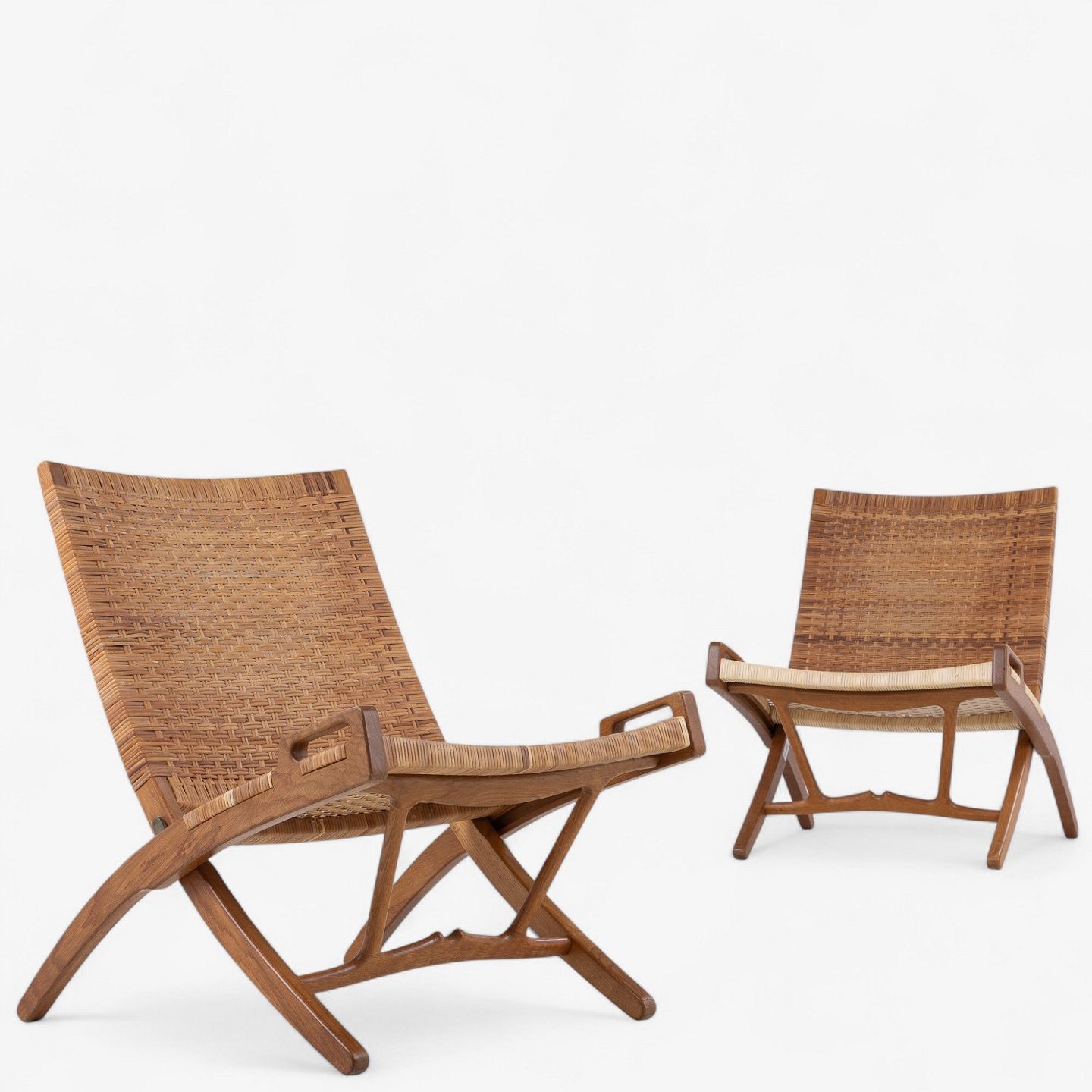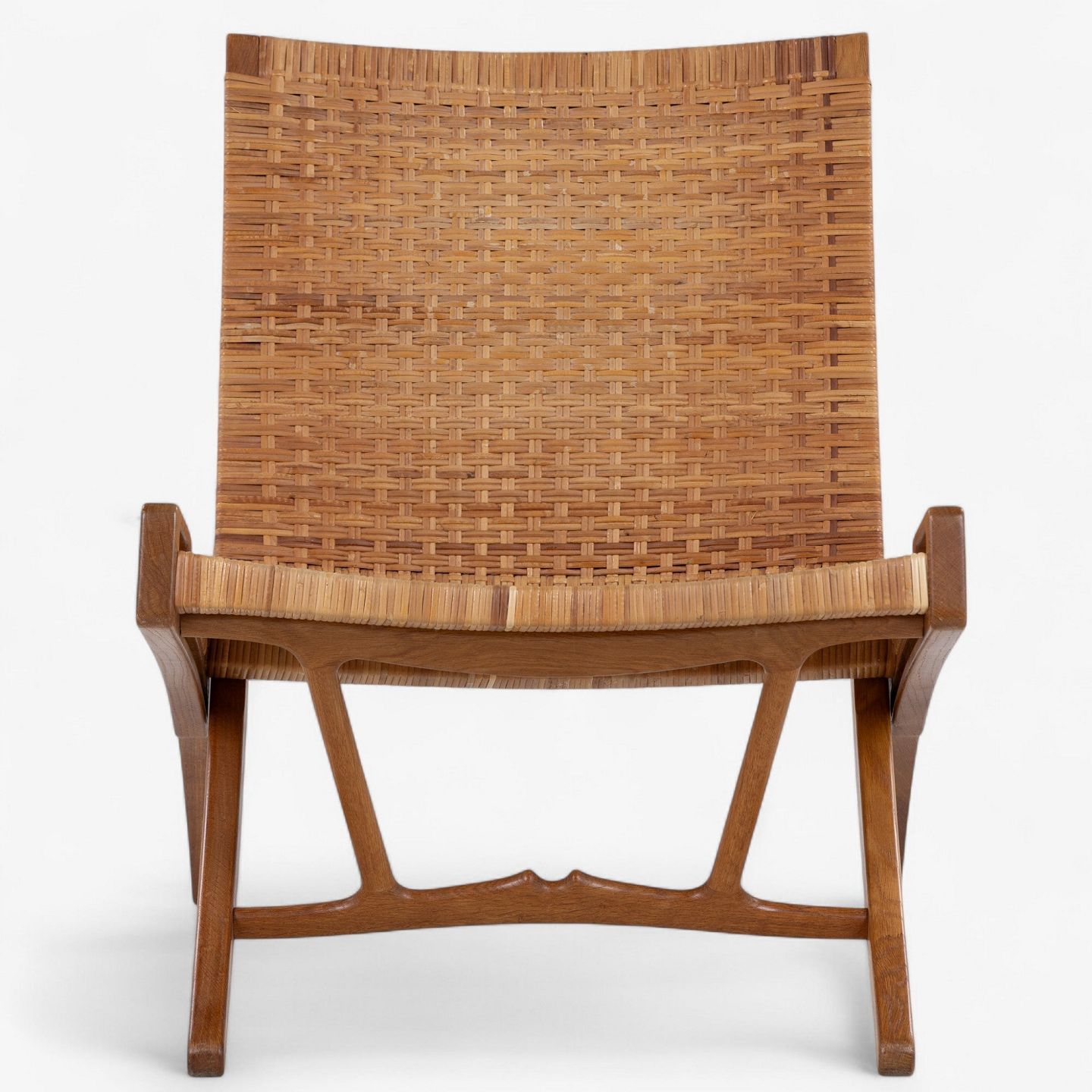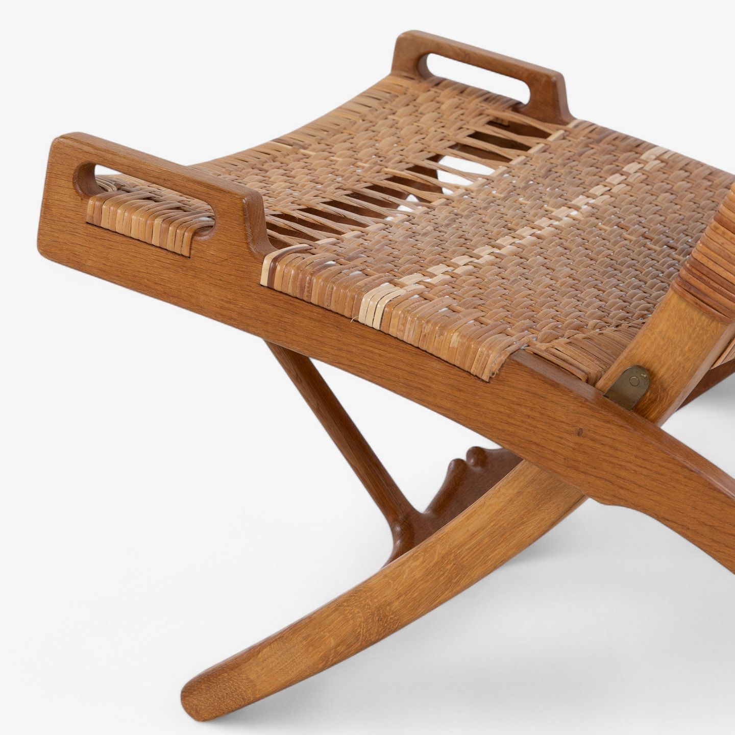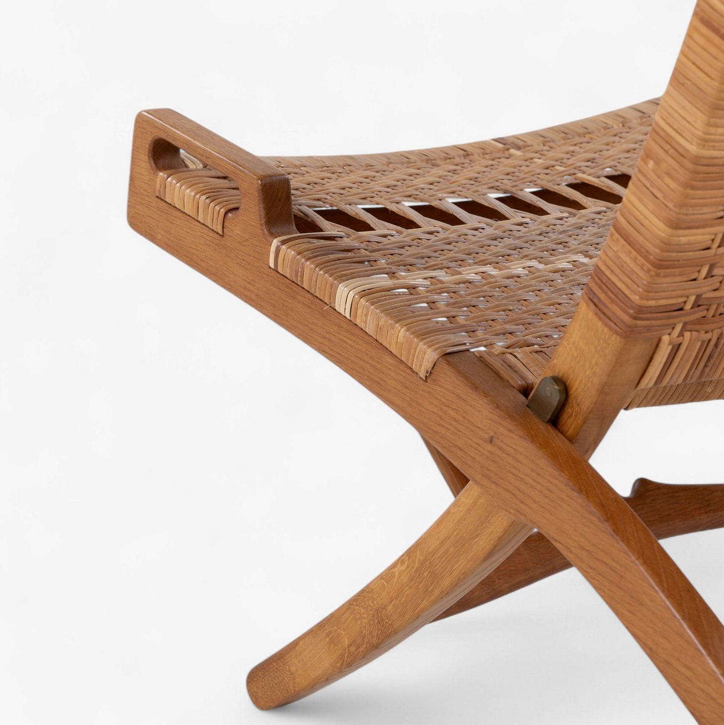 JH 512 - 'Kamin'-foldestol i patineret egetræ med sæde og ryg i delvist originalt flet. Original krog til vægophæng medfølger. Formgivet i 1949.