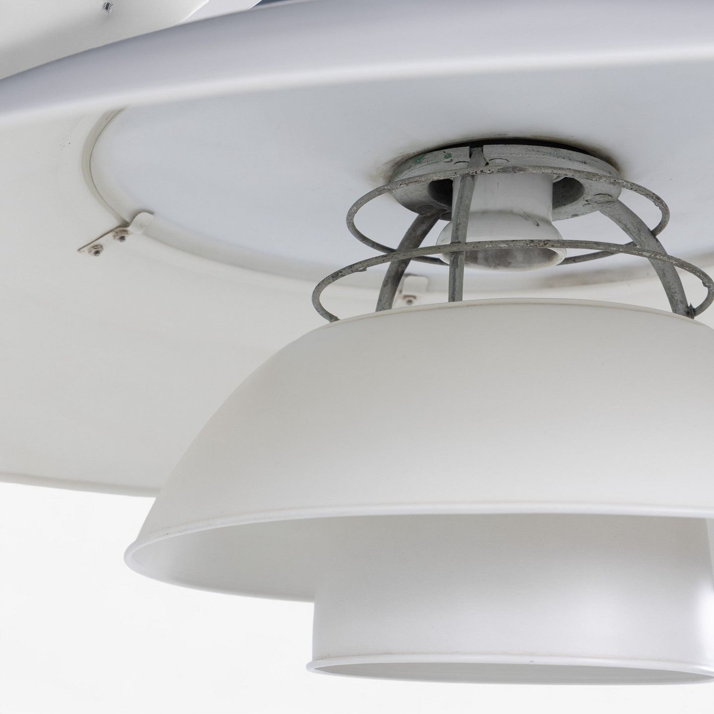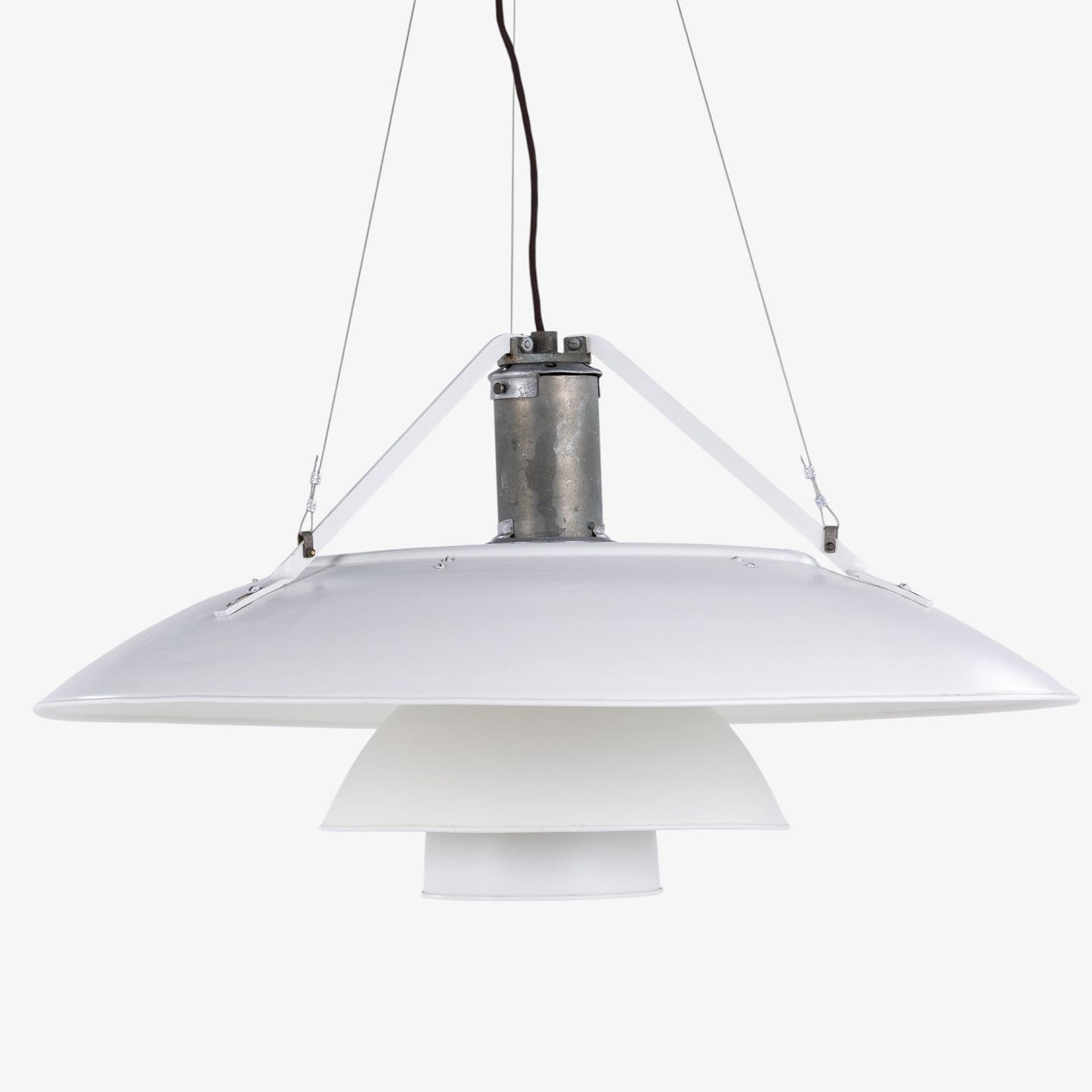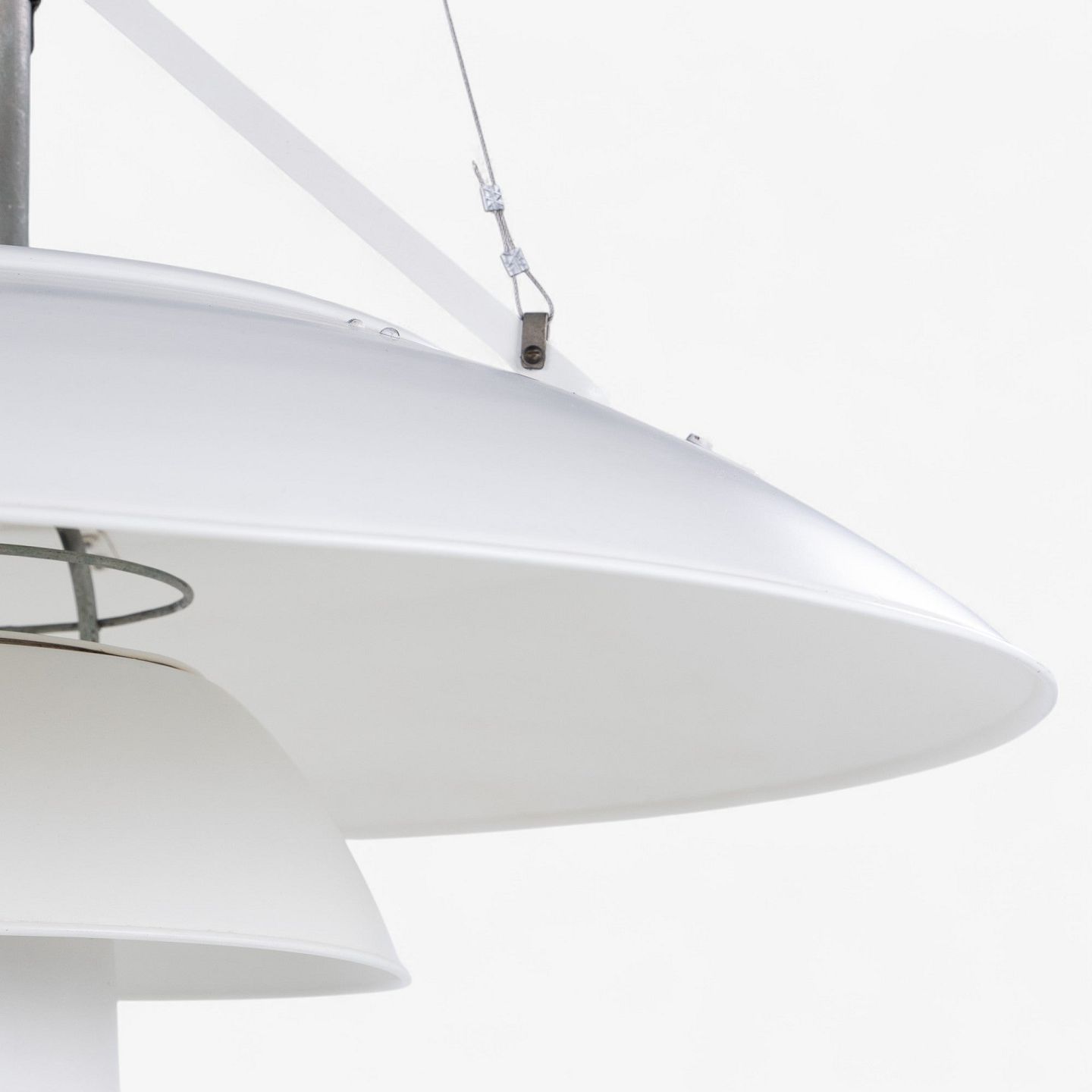PH 8/6 - 'Tennislampe'-pendel i hvidlakeret aluminium med fatning i forniklet metal.