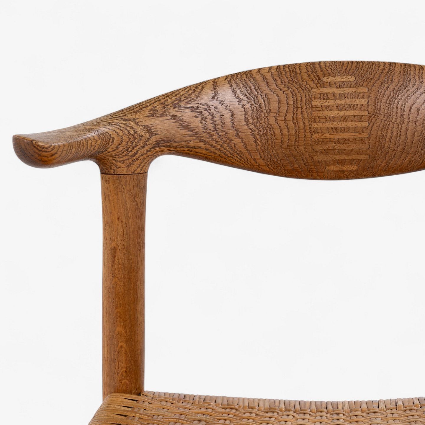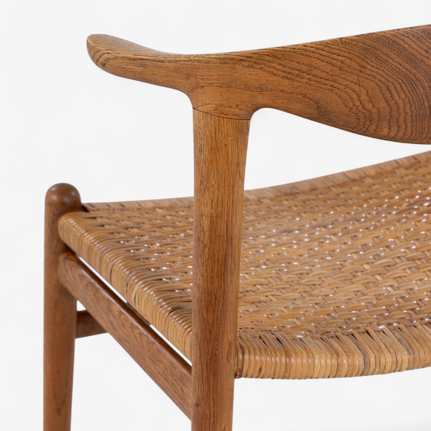 JH 505 - 'Kohorn'-stol i patineret egetræ med sæde i originalt flet.