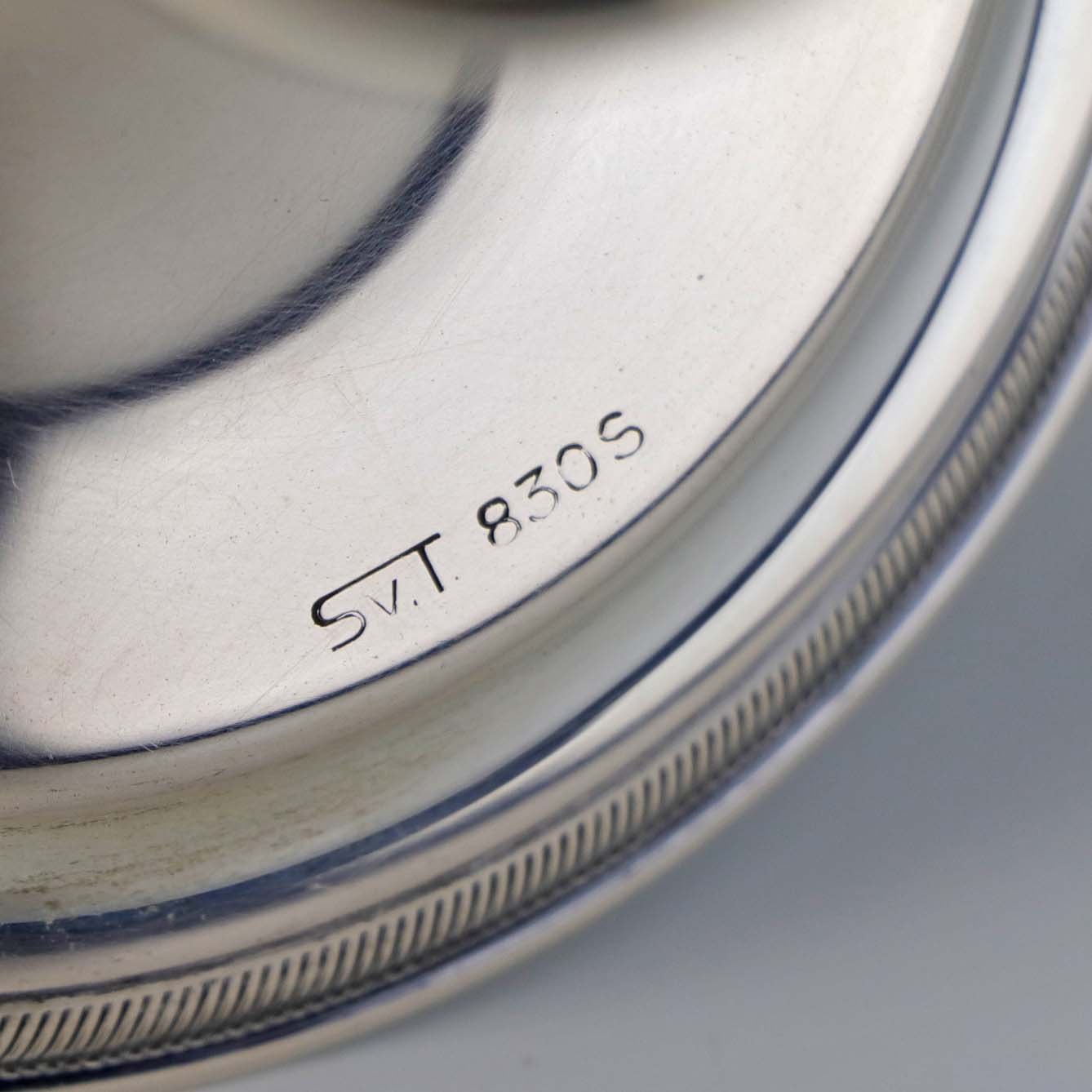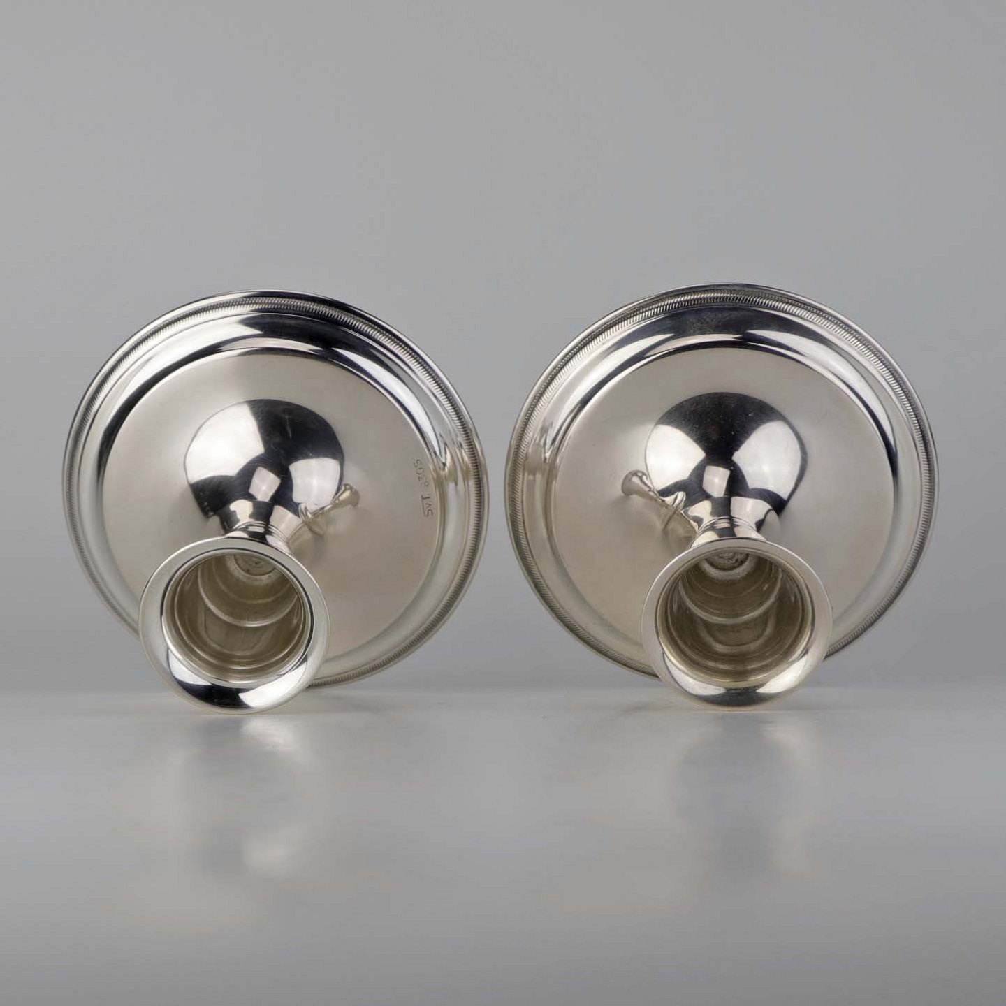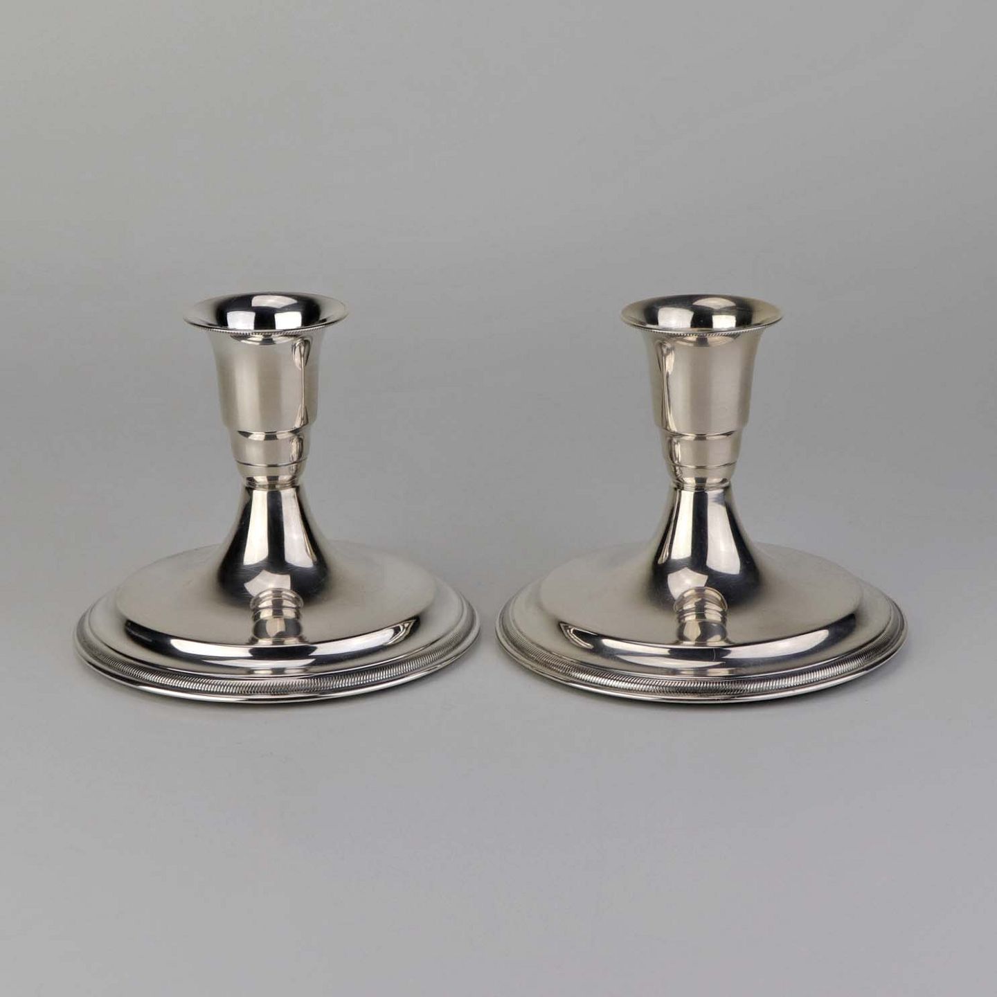 Et sæt lysestager i 830 sølv med rund fod og rillet kant dekoration.