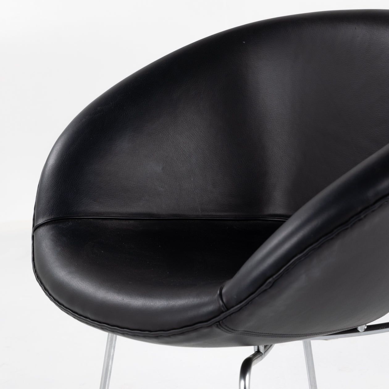 AJ 3318 - 'Gryden'-lænestol i sort King-læder med ben af stål.
