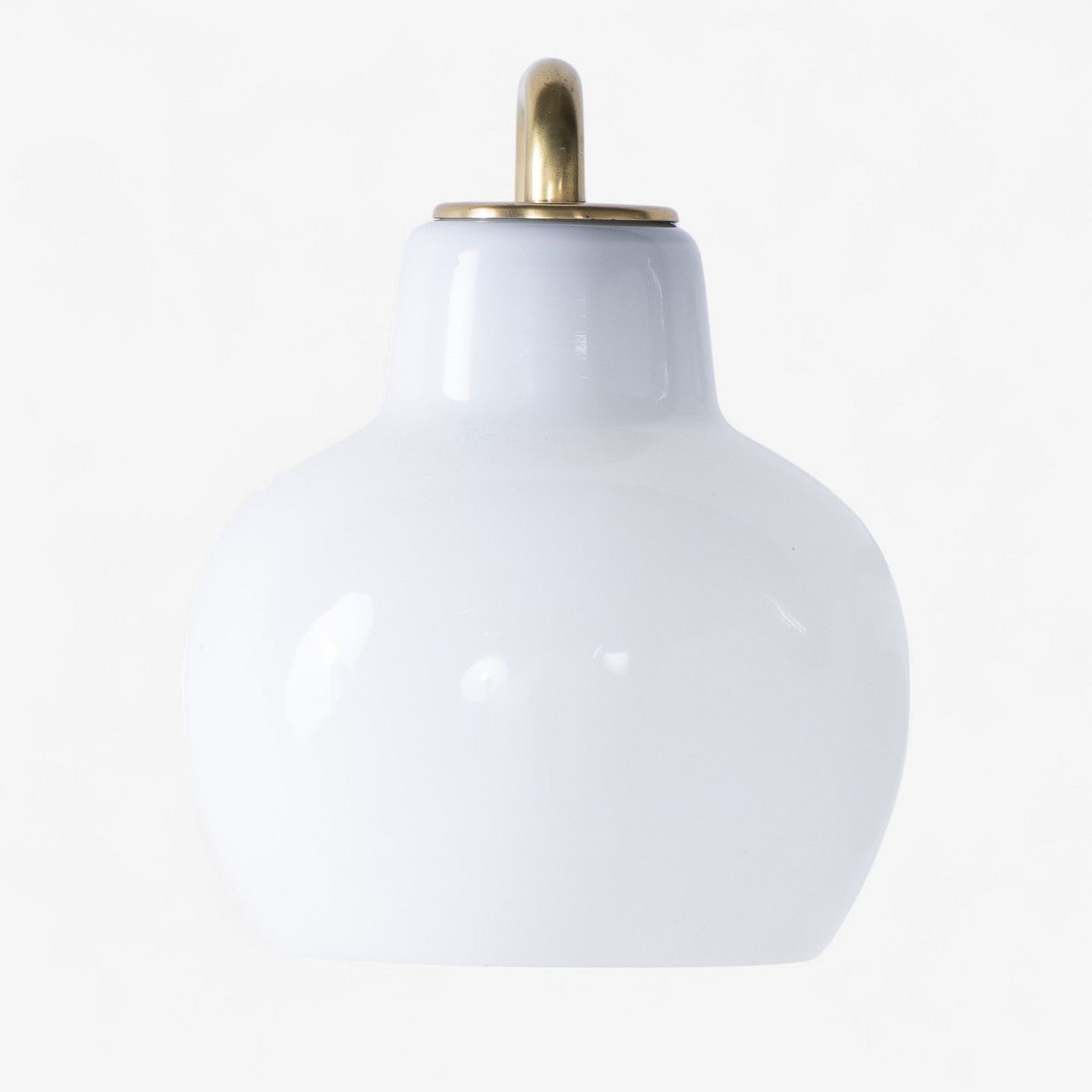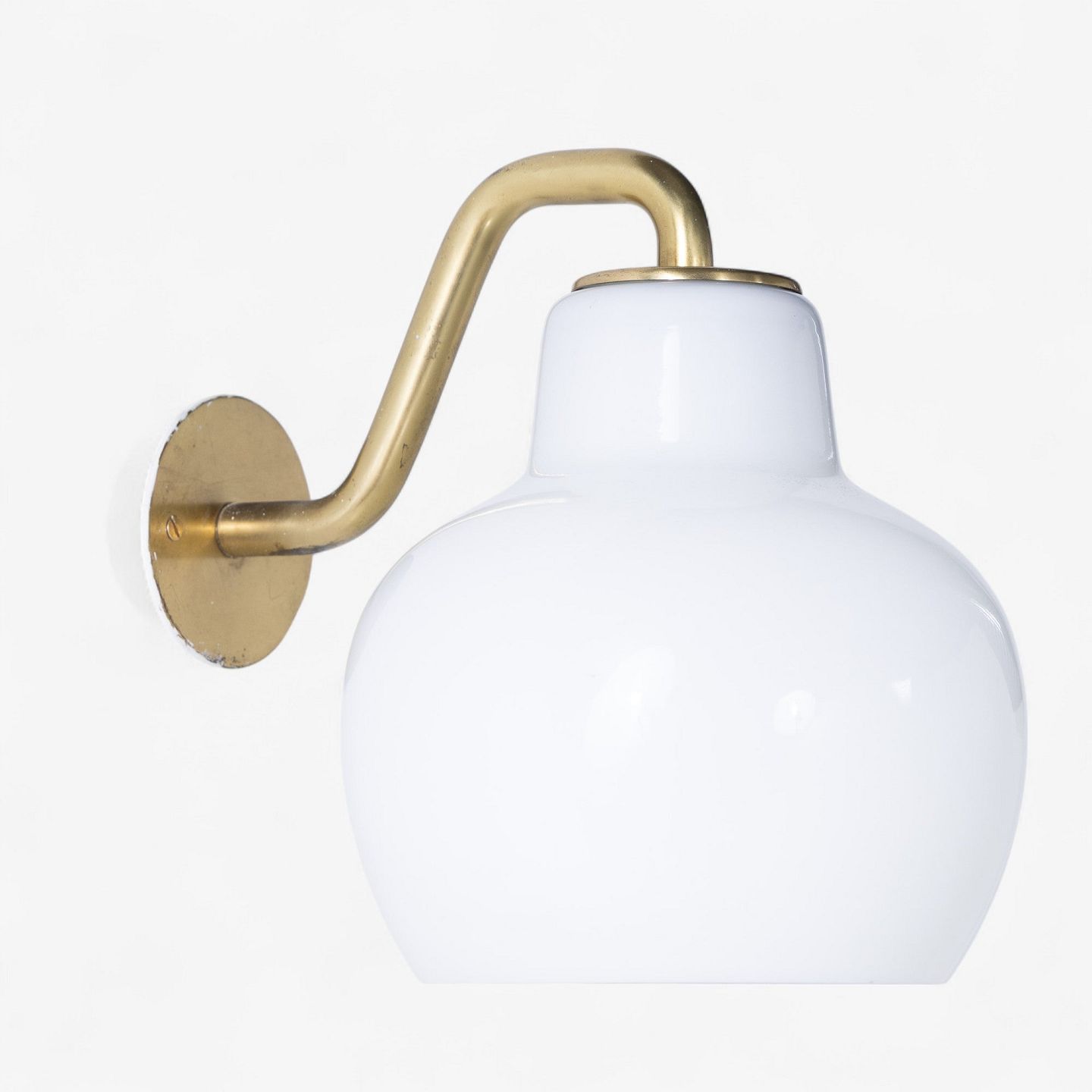 Væglampe i patineret messing med skærm i opalglas. Bemærk: Modelfoto.
