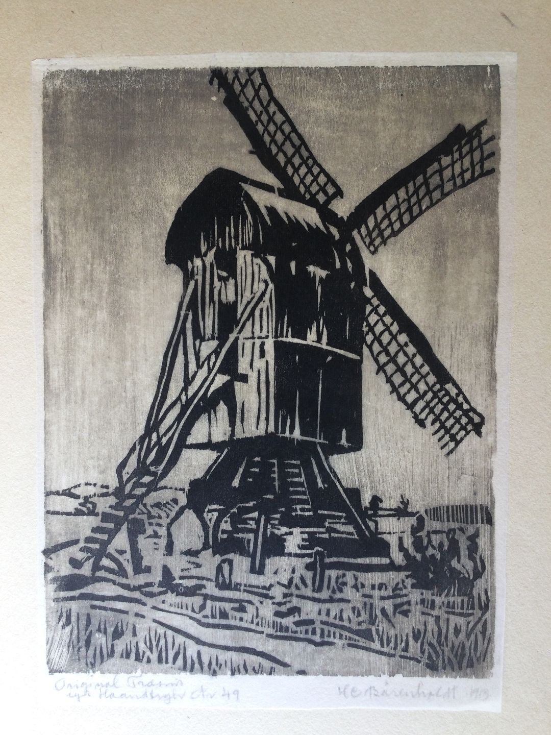 Træsnit af H.C. Bärenholdt - Stubmølle 1913.
