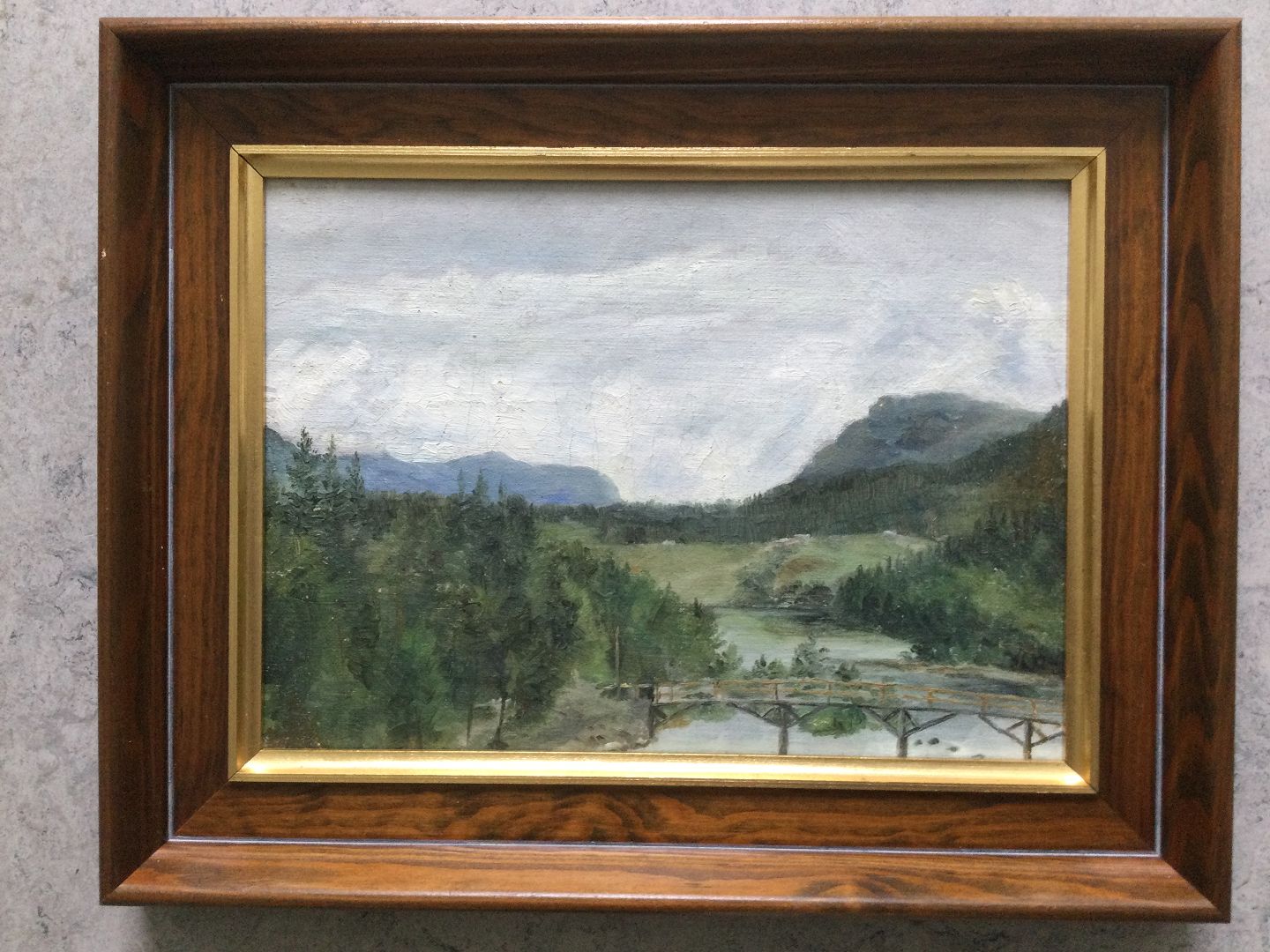 Maleri af Helene Irminger - Landskab med bjerge og bro.