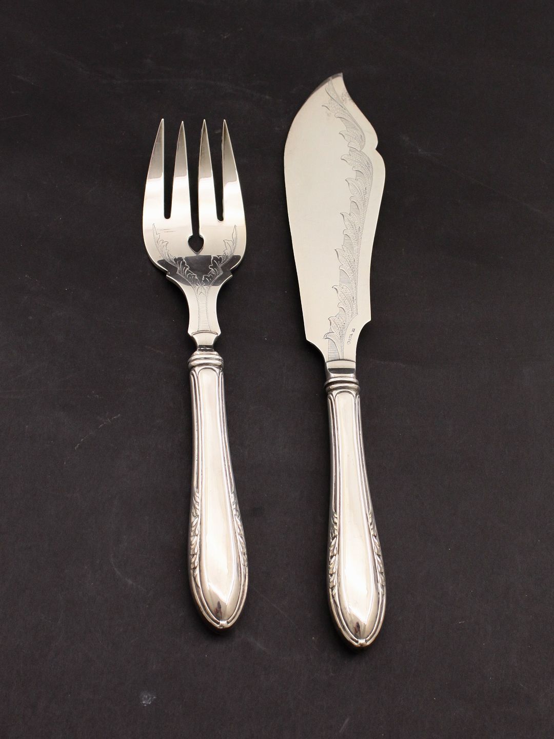 Forsølvet fiske serverings sæt 27 og 33 cm. emne nr. 617084