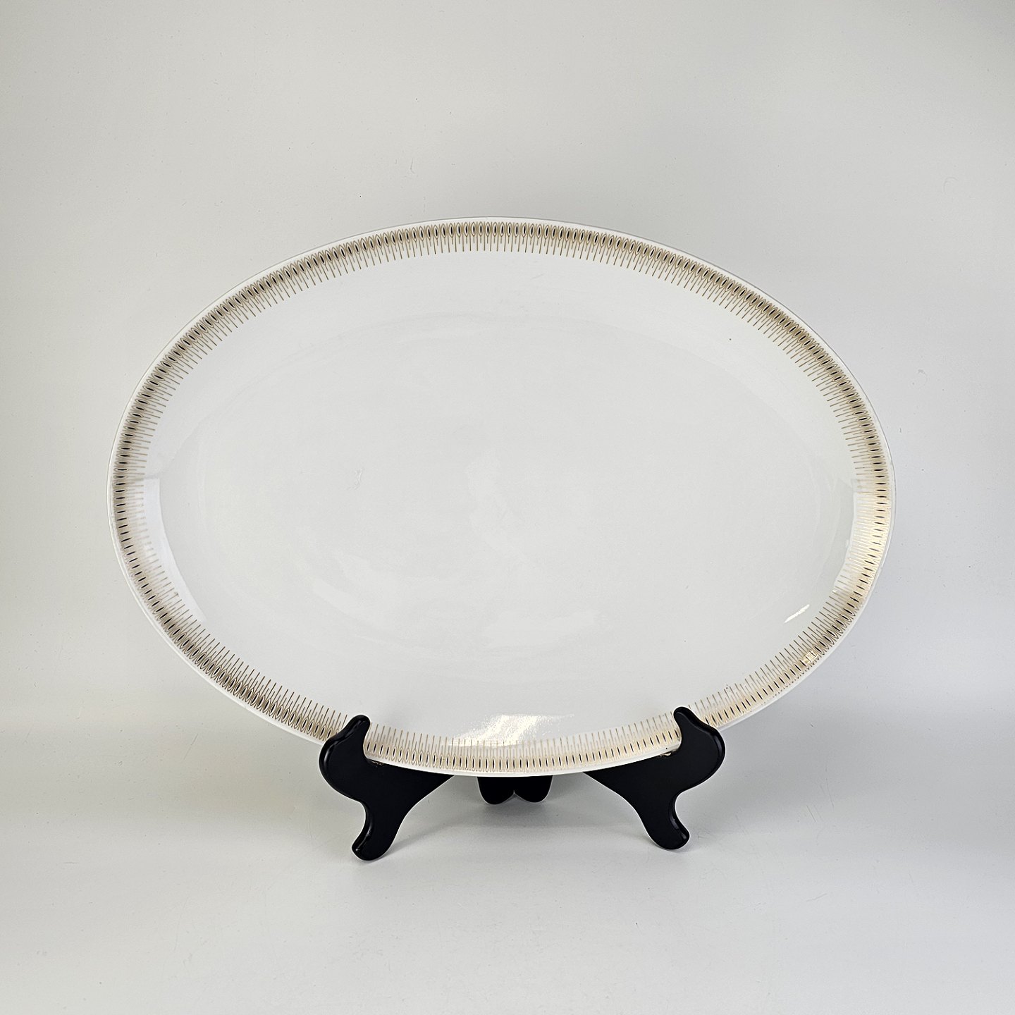 Stort ovalt fad i hvidt porcelæn med dekoration i guld fra stellet Trend 1220